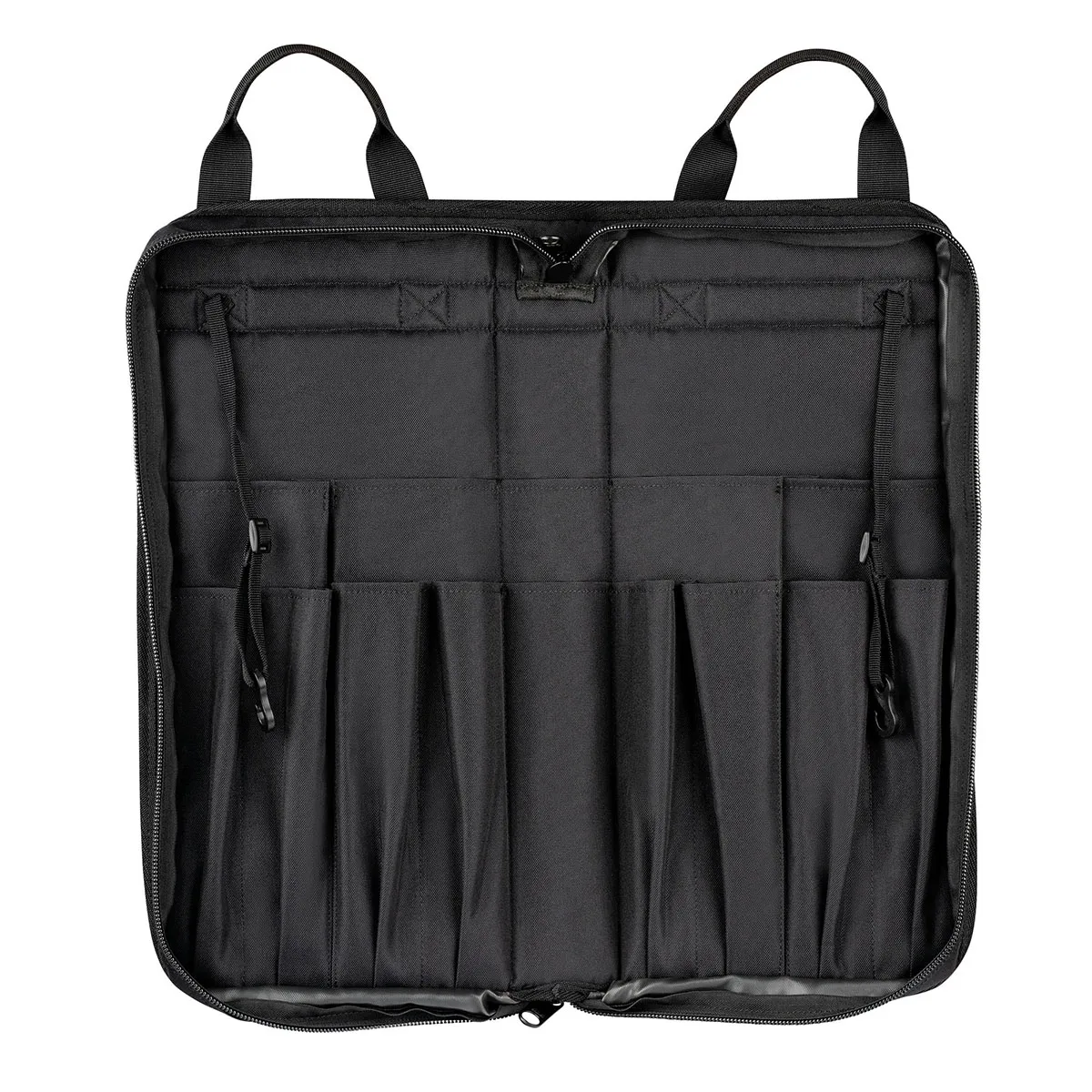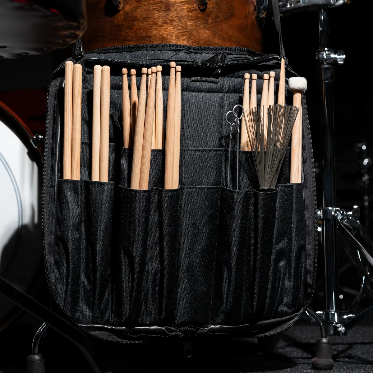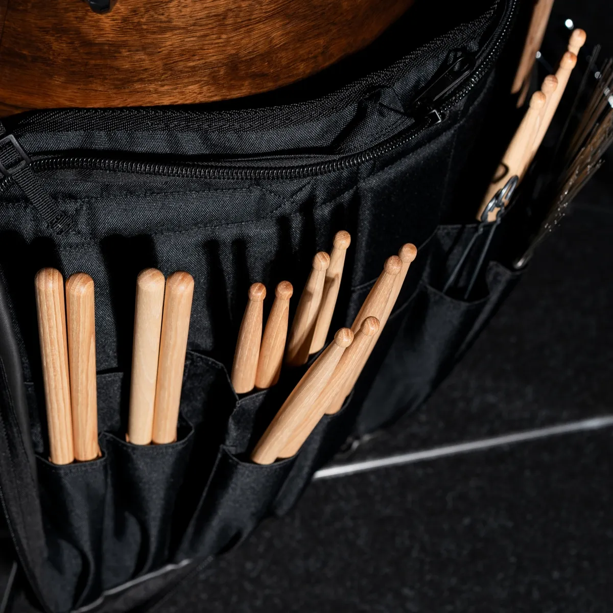 L'intérieur du sac contient huit poches à baguettes, chacune cousue pour accueillir une paire de baguettes de n'importe quelle taille. Chargez ces poches avec des paires de baguettes de poids et de hauteur identiques, ou des paires de diamètres différents si vous utilisez des baguettes de tailles différentes.