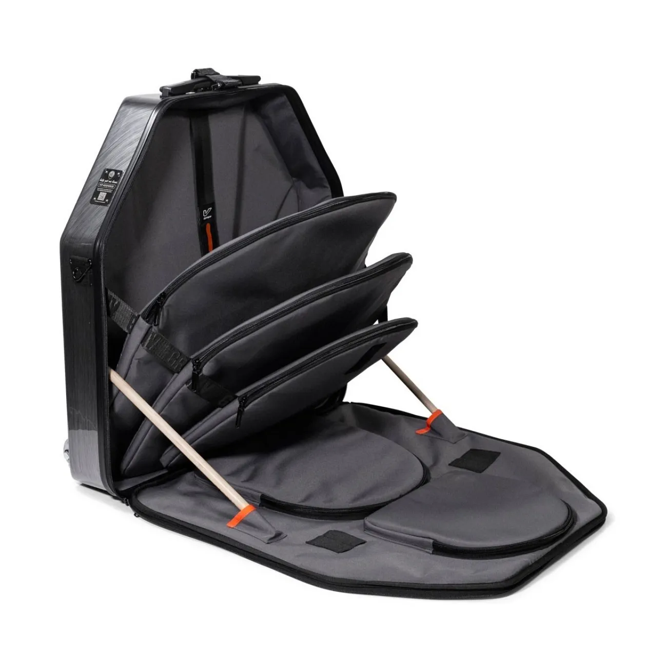 Capable de contenir des cymbales jusqu'à 22'', il peut gérer avec facilité le rangement de vos cymbales et être utilisé par les professionnels les plus exigeants (utilisé par Dennis Chambers). Pour le transport, vous trouverez des roues amovibles se fixent rapidement et simplement ainsi qu'une poignée télescopique très résistante. Enfin, compatible avec le système de sacs à Batterie VELOC, il peut facilement être intégré dans votre dispositif de transport de set-up complet.