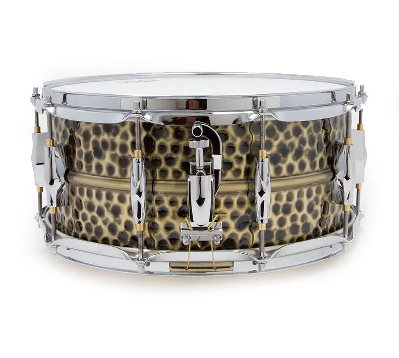 Cette caisse claire est conçue à partir d'un fût en laiton martelé verni finition vintage haut de gamme et équipée de coquilles exclusives signées Lalite.