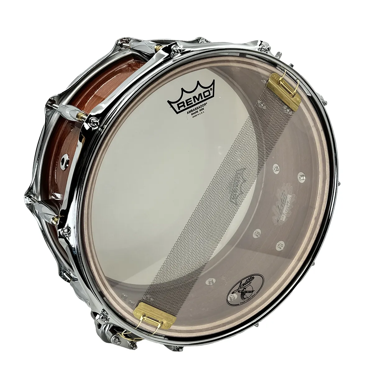 Chaque caisse claire est unique et fabriquée en France par Philippe Lalite, fondateur de La Baguetterie, dans son atelier corrézien.