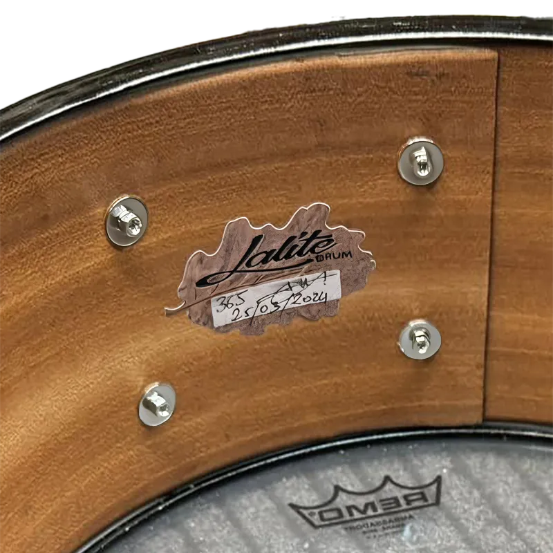 • Fût Ø14“ x 6,5“ en Laiton Nickelé Noir avec Fut Interne Acajou