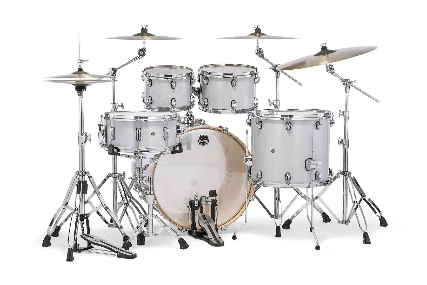 Ce nouveau kit Mapex Mars Birch présente des tailles qui peuvent couvrir un large éventail de styles de jeu. Cette configuration offre un mélange de puissance et de polyvalence bien adapté au batteur qui a besoin d'un kit portable et de bonne qualité sonore.