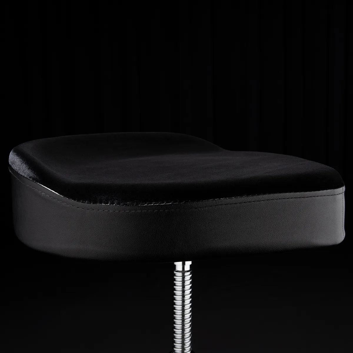 La surface d'assise élargie permet aux batteurs d'être plus à l'aise et de bénéficier d'un meilleur confort. Le bord arrondi de l'assise permet d'optimiser le positionnement des cuisses et la inclinaison de 2,5 degrés empêche les batteurs de glisser.