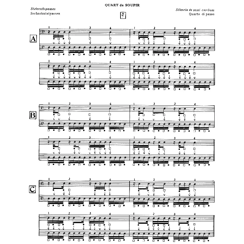 Application du solfège rythmique. Partitions et solos sur la batterie avec un doigté original et simple qui vous permettra par la suite de jouer les 1342 pages