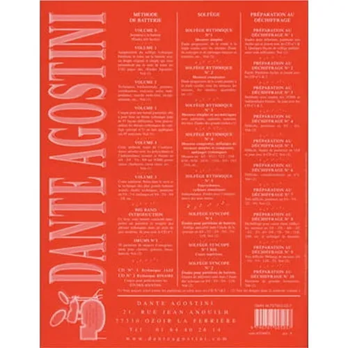 Cette méthode traite de l'indépendance absolue avec les polyrythmes et l'indépendance ternaire et binaire en 4/4, 5/4, 7/4, 9/8 sur toms, grosse caisse, charleston caisse claire, etc...