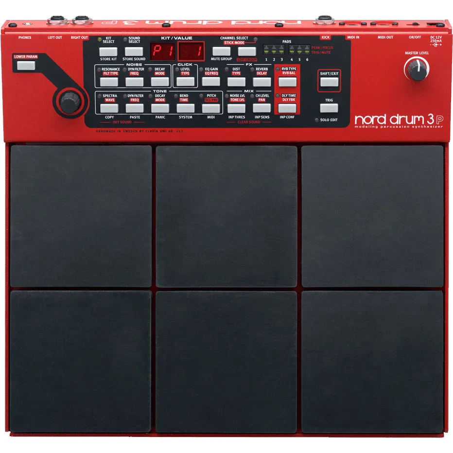 Le Nord Drum3p est un Pad à 6 zones s'appuyant sur un synthétiseur de percussions à modélisation avec une incroyable palette sonore et une expressivité étonnante. ! Créez des percussions rétrofuturistes avec des formes d’ondes analogiques ou utilisez des formes d’ondes harmoniques complexes en association avec différents types de synthèse, pour un résultat sonore incroyablement organique. Le Nord Drum 3p a été développé pour le musicien de scène et sa large plage dynamique et sa rapidité de réponse viennent encore prolonger la sensation de jouer d’un véritable instrument.