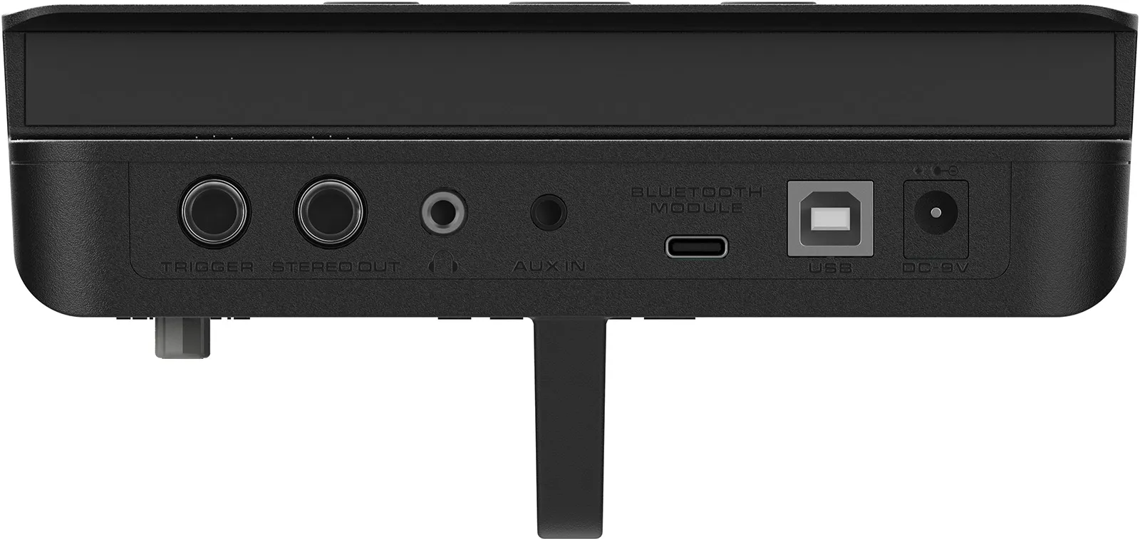 Sorties : sortie casque pour une pratique silencieuse, sortie principale pour brancher la batterie sur un ampli ou un système de sonorisation.