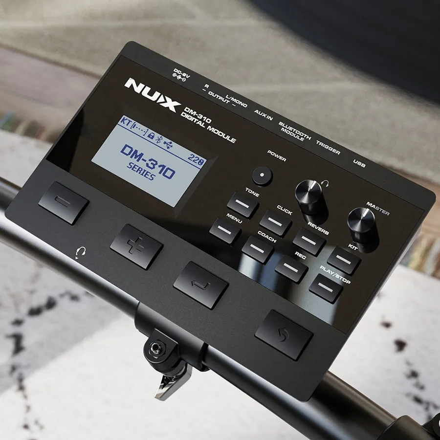 La batterie électronique NUX DM-310 dispose d'une bibliothèque de sons de haute qualité, échantillonnés par NUX eux-mêmes, et de diverses fonctions pratiques. NUX sait ce dont les batteurs ont besoin, la nouvelle taille plus grande de la caisse claire et du tom basse rend l'ensemble plus harmonieux et plus proche de la sensation d'une batterie acoustique. Toutes les peaux maillées double plis rendent le rebond plus naturel et plus immersif. Les fonctions riches et pratiques répondent aux différents besoins de chaque batteur.