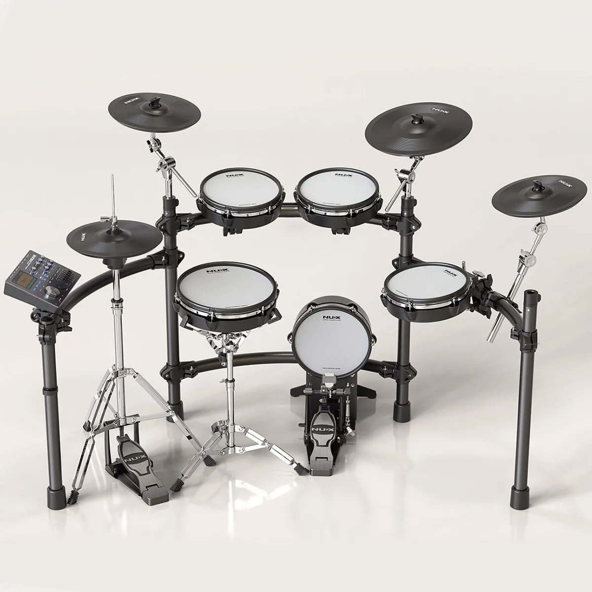 Le DM-8 est le dernier kit de batterie NUX doté de nouvelles technologies innovantes, offrant aux batteurs une sensation acoustique authentique et un jeu expressif réaliste. La DM-8 est dotée d'un système de rack robuste qui n'est pas seulement durable, mais qui est aussi très esthétique lorsque vous vous produisez !