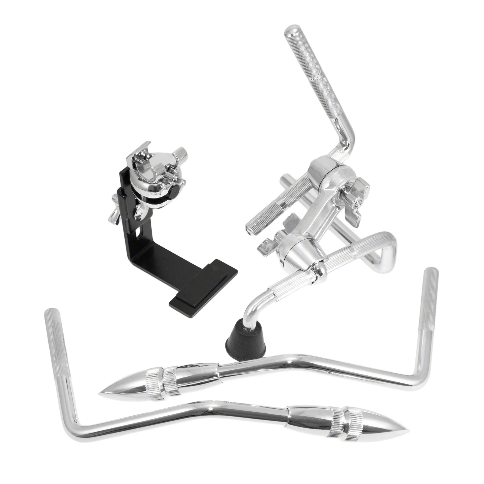 Le Kit de conversion Dunnett R Class 12.7mm inclus le support de Tom Rail Mount, deux piques de grosse caisse, le réhausseur de grosse caisse avec plaque d'attache de pédale et le Clamp universel pour cercle RCUC.