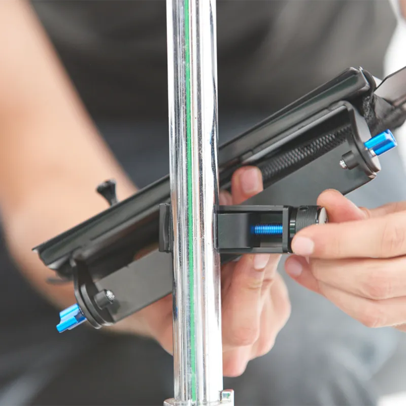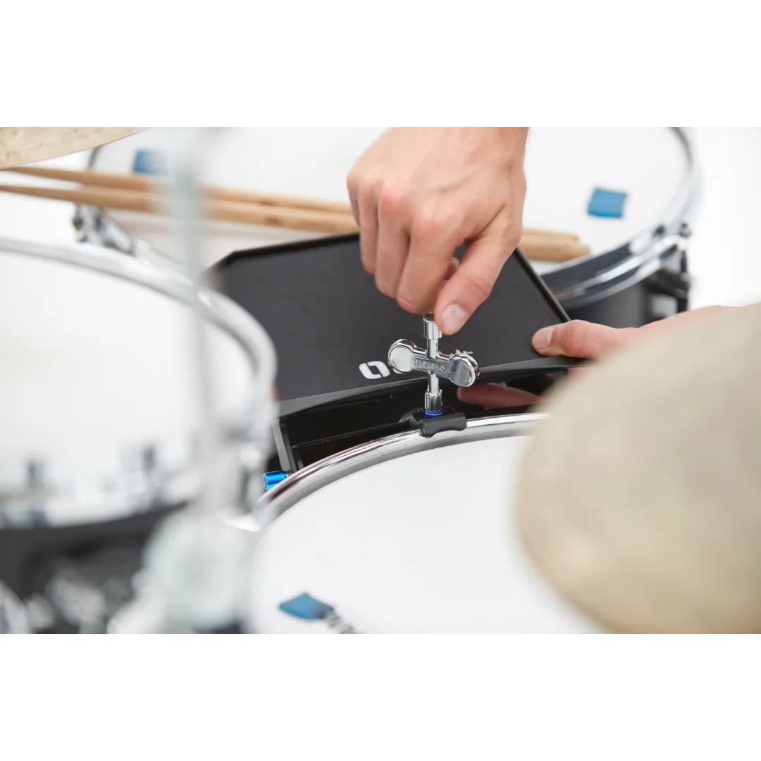 Le NBO Oneboard est le seul support modulable permettant de garder tout à portée de main. C'est un dispositif solide, stable, compact et facile à monter qui peut être fixé sur des cerclages de batterie (pas en bois), des tubes, des tiges ou des filetages et grâce auquel il est possible de jouer en toute liberté. Il peut être serré à la main avec le bouton de serrage ou avec une clé de batterie.