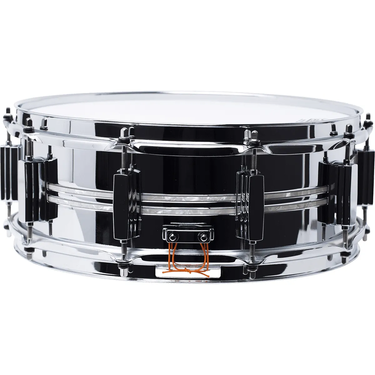 Autre première pour Pearl, la Duoluxe est dotée de la seule coque métallique incrustée dans le monde des caisses claires. Cette conception rendue célèbre sur les modèles vintage Jupiter, est minutieusement remplie de bandes de Nicotine White Marine Pearl (#405) découpées à la main. Cela permet non seulement d'obtenir un son de caisse légèrement tempéré, mais aussi d'obtenir un look unique et immédiatement perceptible.