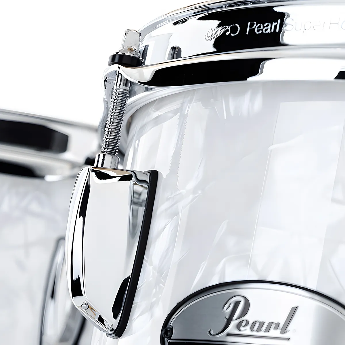 Sa coque en érable nord-américain EvenPly-Six (5,4 mm) est conçue pour une chaleur sonore vive et diffuse un large spectre de fréquences en performance. Le RL Lug classique de Pearl, le système de suspension tom OptiMount, les cercles SuperHoop II Triple-Flanged de 2,3 mm et les têtes Remo UT Pinstripe sont ajoutés pour la solidité et la stabilité.