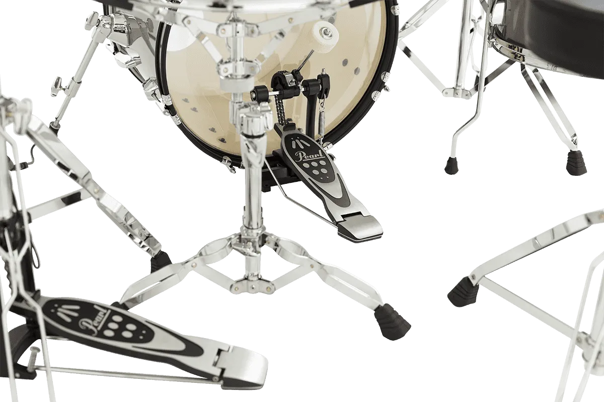 Depuis toujours, Pearl fait partie des fabricants qui règnent sur l’entrée de gamme, avec des produits très bien étudiés, dans le but de proposer le maximum à un tarif minimum. En attestent ces fûts qui totalisent 6 plis de peuplier pour une épaisseur de 7 mm, avec un rhodoïd impeccable, proposé en trois couleurs pour la Roadshow. Le coloris « jet black » allie ici la sobriété et l’élégance intemporelle du noir brillant et l’accastillage Pearl affiche ses lettres de noblesse. Le tout servi par une réputation de solidité qui vaut aussi pour l’entrée de gamme. Piques, tiges, coquilles et cercles ne font pas défaut, tout comme le déclencheur de timbre. Tout a été étudié pour durer, y compris sous les baguettes de débutants qui ne s’y prennent pas toujours comme il faut.