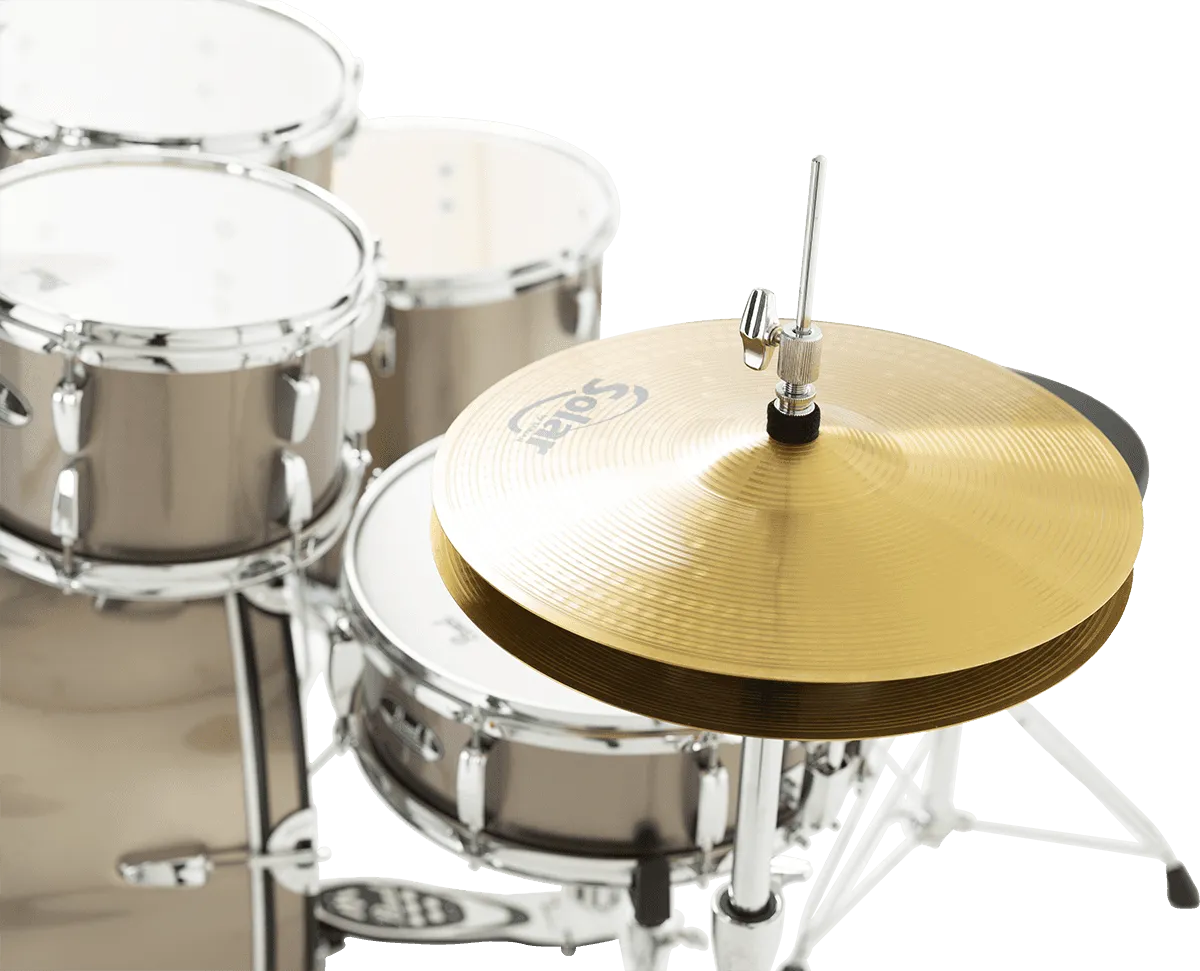Le côté vraiment sympathique de ce kit, c’est qu’il ne manque rien pour commencer à s’éclater ! Les fûts, les accessoires à double embase (eux aussi considérés comme offrant un très bon rapport qualité/prix sur un marché pourtant concurrentiel), le siège, les cymbales Solar Sabian (des charlestons 14" et une crash/ride 16" qui permettront de prendre ses premiers repères), et même le sac avec les baguettes... Tout est fourni. Alors honnêtement, à ce prix-là, on se dit que les jeunes d’aujourd’hui ont décidément beaucoup de chance !