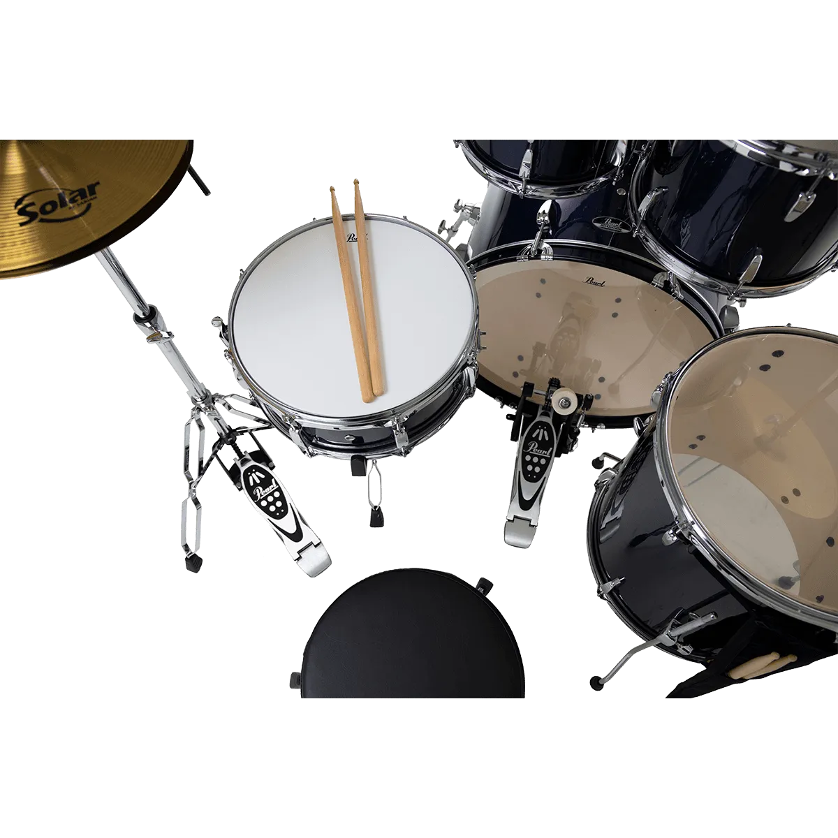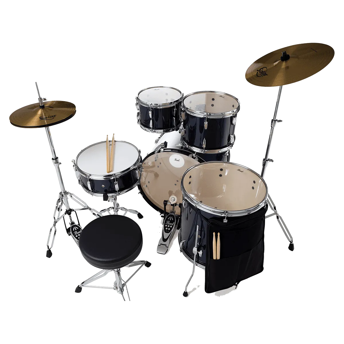Le côté vraiment sympathique de ce kit, c’est qu’il ne manque rien pour commencer à s’éclater ! Les fûts, les accessoires à double embase (eux aussi considérés comme offrant un très bon rapport qualité/prix sur un marché pourtant concurrentiel), le siège, les cymbales Solar Sabian (des charlestons 14" et une crash 16" qui permettront de prendre ses premiers repères), et même le sac avec les baguettes... Tout est fourni. Alors honnêtement, à ce prix-là, on se dit que les jeunes d’aujourd’hui ont décidément beaucoup de chance !