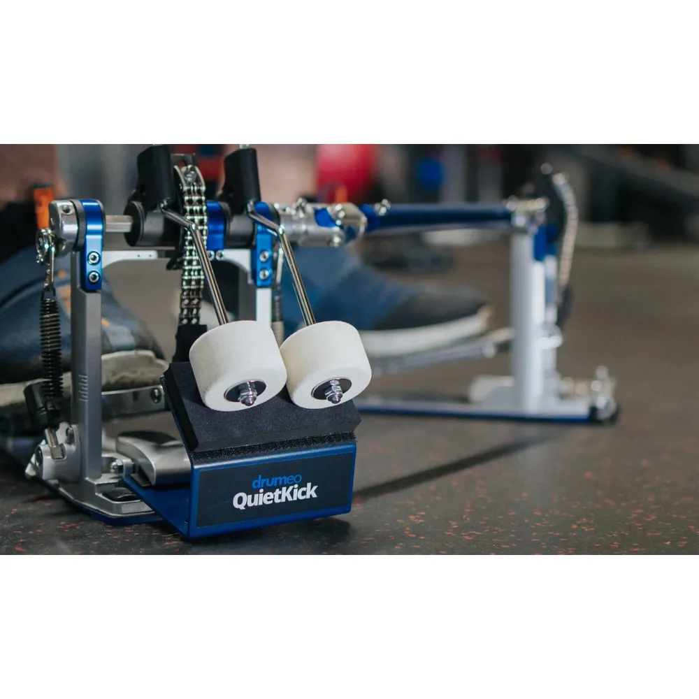 Oui, votre double pédale fonctionne aussi. Une batte supplémentaire transforme votre QuietKick en une station d'entraînement ultime pour double pédale. (Batte supplémentaire vendu séparément ou directement fourni avec le modèle Double).