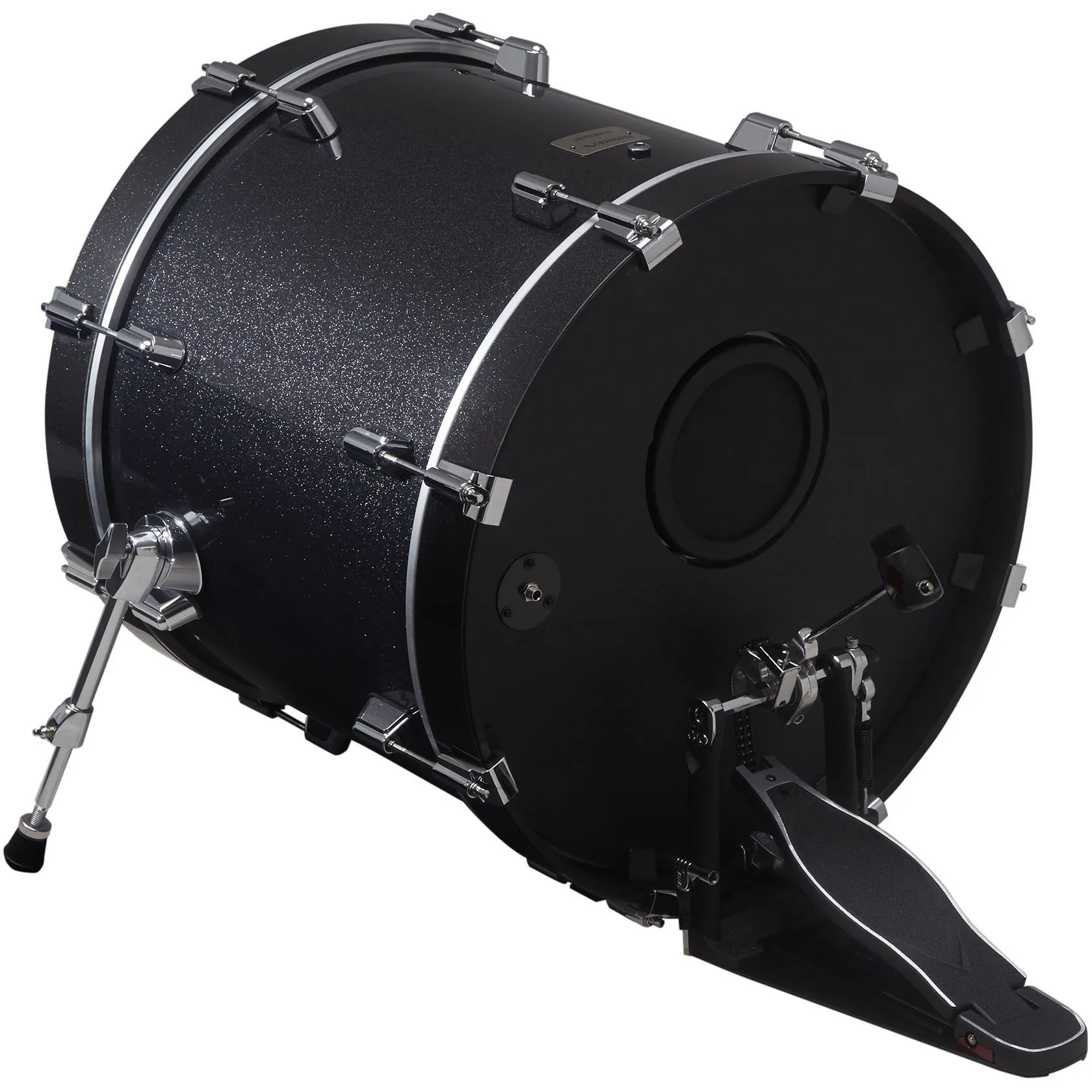 Le KD-200-MS est une grosse caisse premium de 20 pouces avec fût en bois de profondeur standard pour procurer une expérience V-Drums Acoustic Design totalement immersive. Elle intègre un capteur innovant dans sa peau qui se monte exactement comme celle d’un fût acoustique. À chaque fois que la batte la frappe, la pression d’air dans le fût est précisément restituée pour procurer des sensations remarquablement similaires à une grosse caisse acoustique. Et grâce à la technologie de capteur et de déclenchement évoluée Roland, chaque coup est précisément détecté pour une reproduction numérique parfaite.