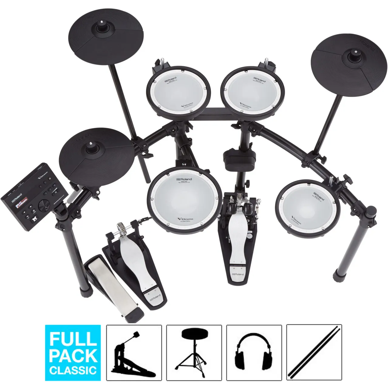 Depuis 1997, les V-Drums Roland sont devenues le standard en matière de batteries électroniques. Souvent imitées mais jamais égalées, les V-Drums procurent les sons, les sensations et l'expérience de jeu d'un kit acoustique, fournies par une technologie, des fonctions et une fiabilité que vous ne trouverez nulle part ailleurs. Et en tant que kit d'entrée de gamme TD-07, la TD-07DMK met l'héritage V-Drums à portée des tous les batteurs, qu'ils soient débutants ou expérimentés.