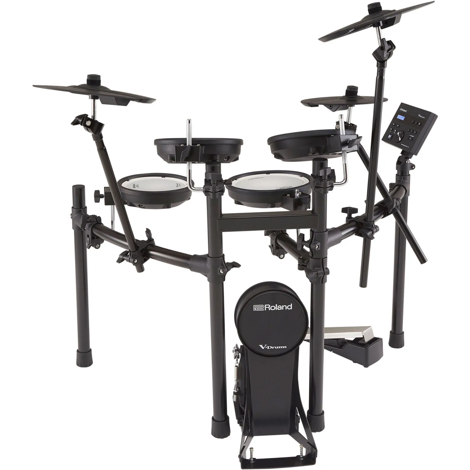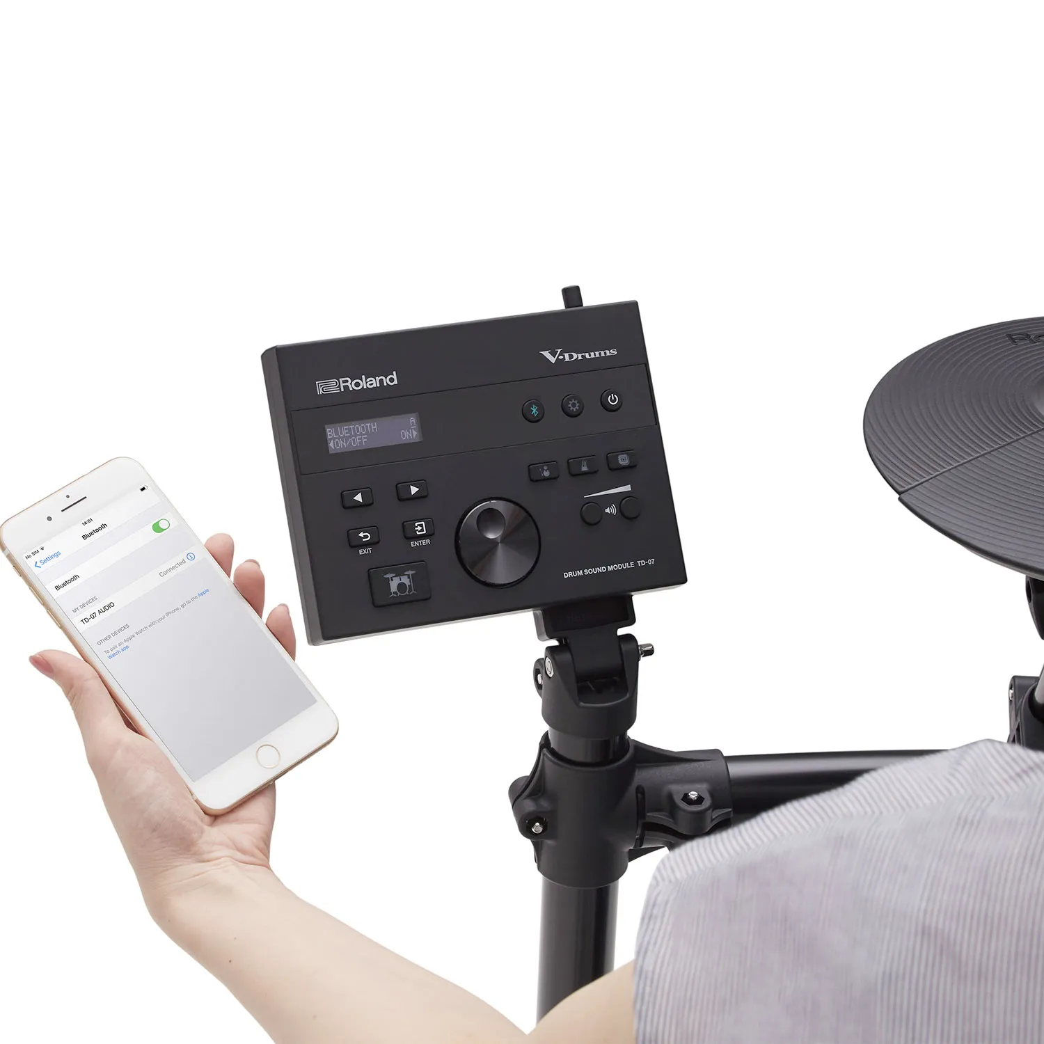Idéalement compacte et conçue pour jouer à la maison, la V-Drums TD-07KV procure une expressivité et une jouabilité V-Drums haut de gamme pour un budget raisonnable. Les fameuses peaux Mesh Roland à double couche ultra silencieuses équipent les pads de caisse claire et de toms. Les larges pads de cymbales Crash et Ride et le pad de grosse caisse procurent des sensations réalistes pour les mains et les pieds. La TD-07KV vous permet également d'explorer des options créatives beaucoup plus nombreuses que sur un kit acoustique grâce, entre autres, à des outils d'édition détaillée des sons, à la connectivité Bluetooth pour jouer sur de la musique ou des contenus pédagogiques, et à la connectivité USB pour l'enregistrement direct dans un logiciel musical.