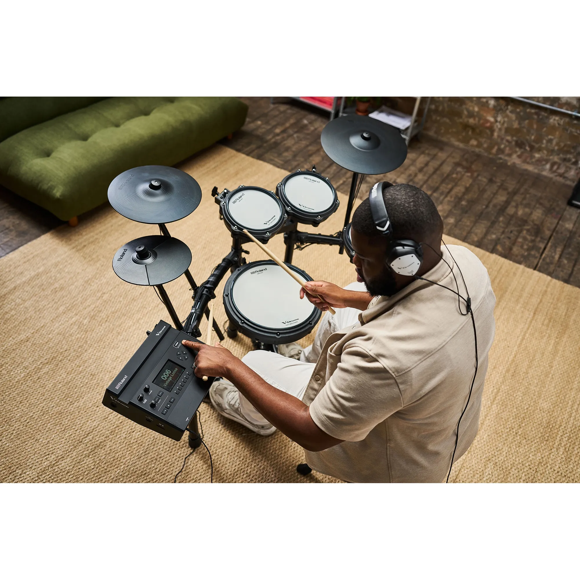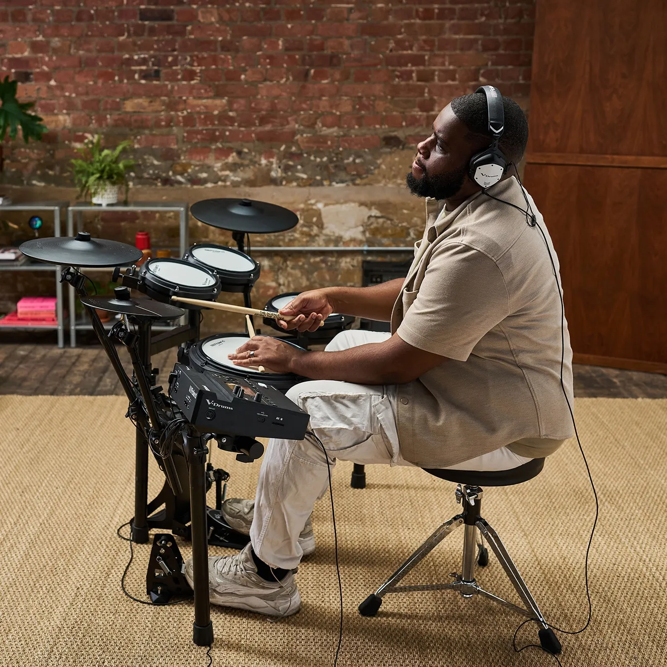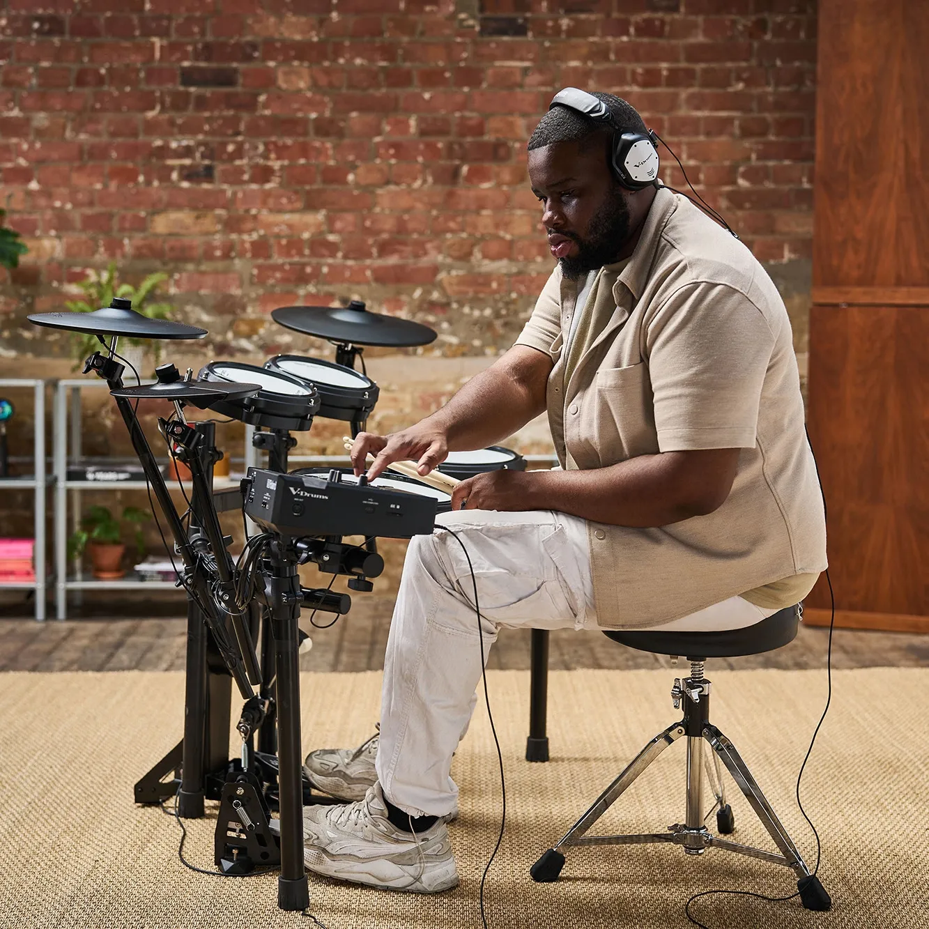 • Des V-Drums 3 compactes, idéales pour le travail quotidien et l'enregistrement à la maison