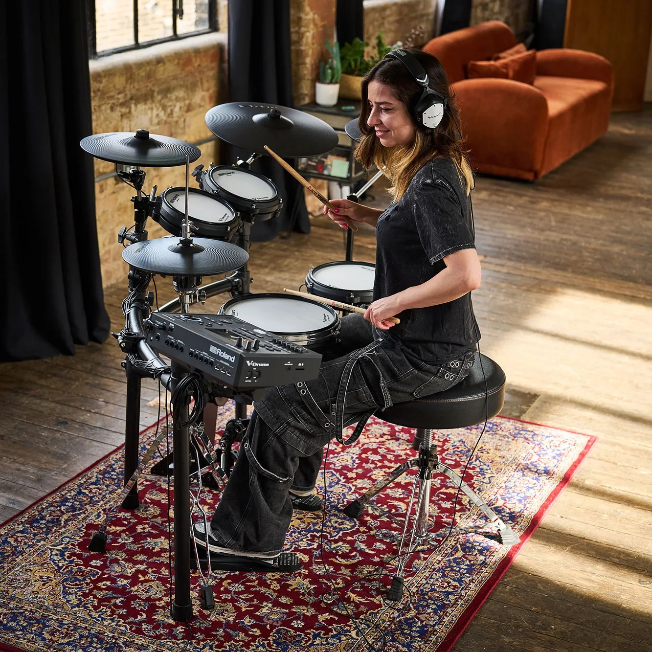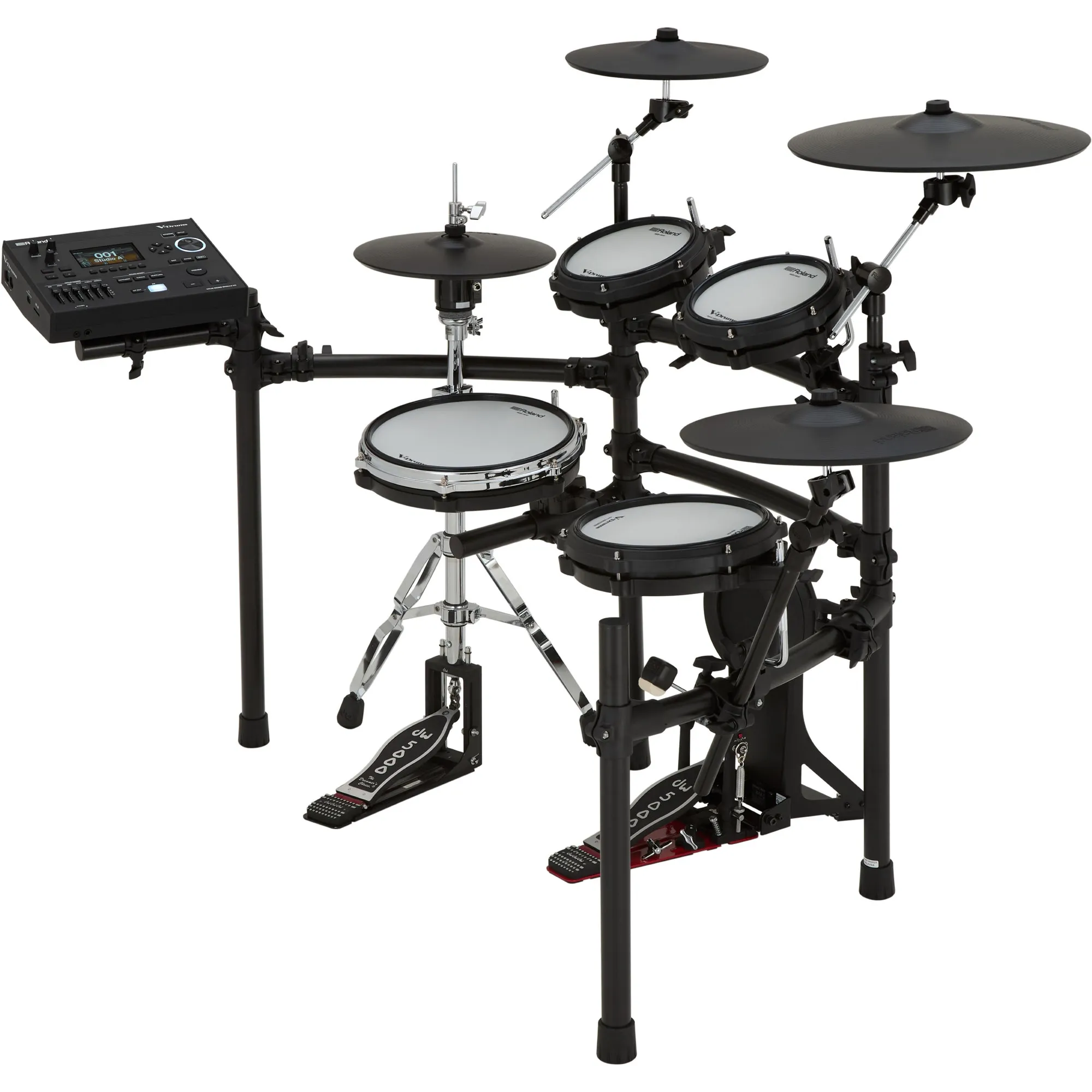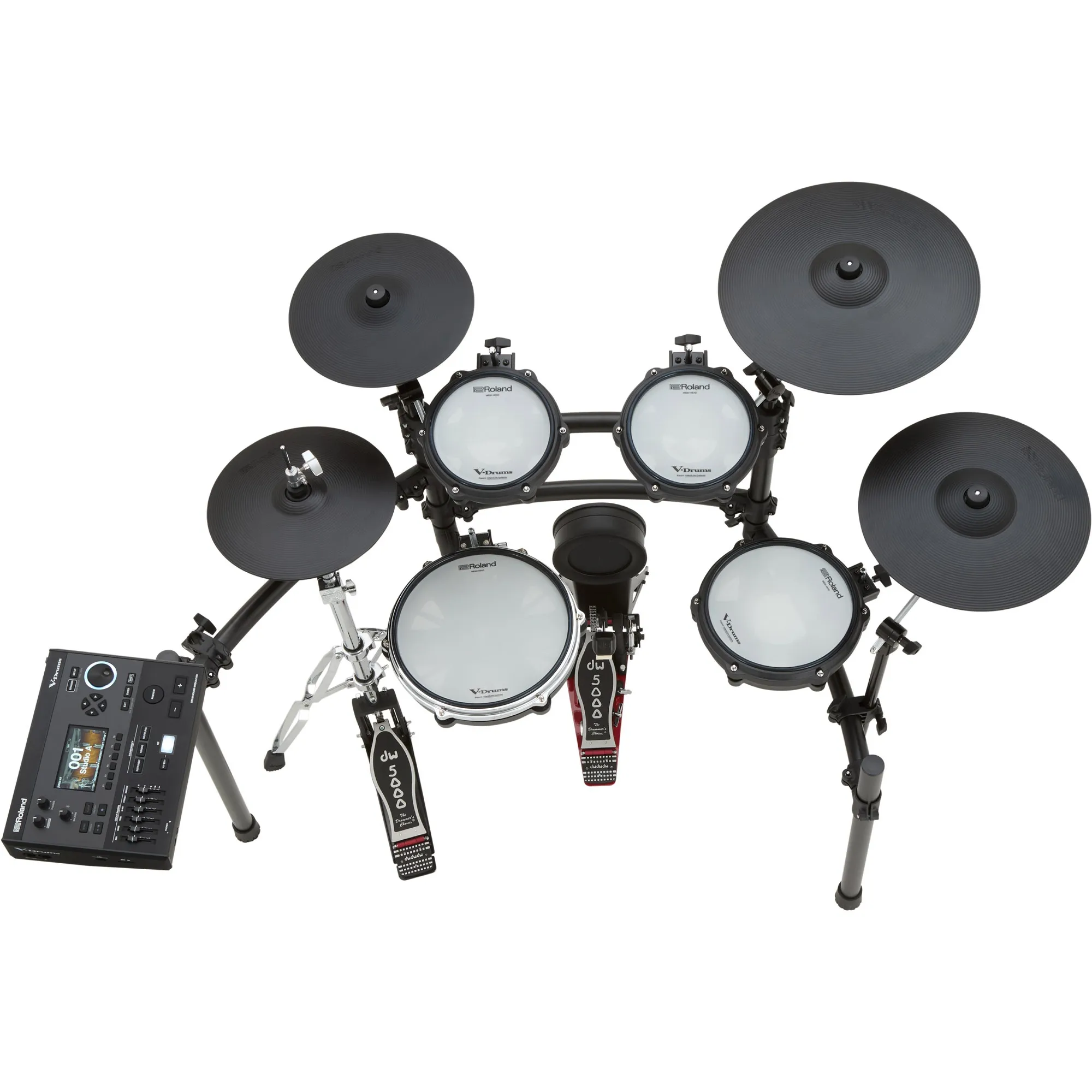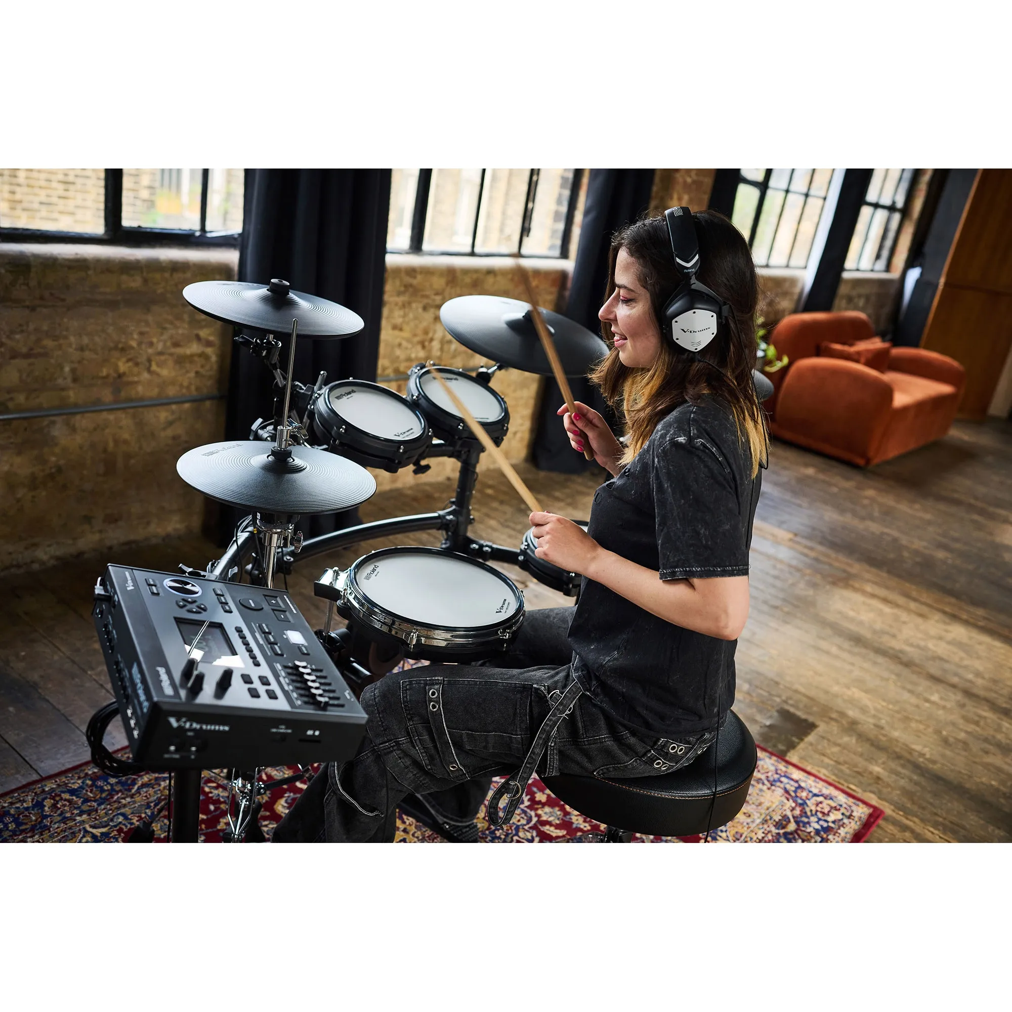 • Un kit V-Drums 5 à cinq fûts, idéal pour travailler à la maison, enregistrer en studio et se produire sur de petites scènes