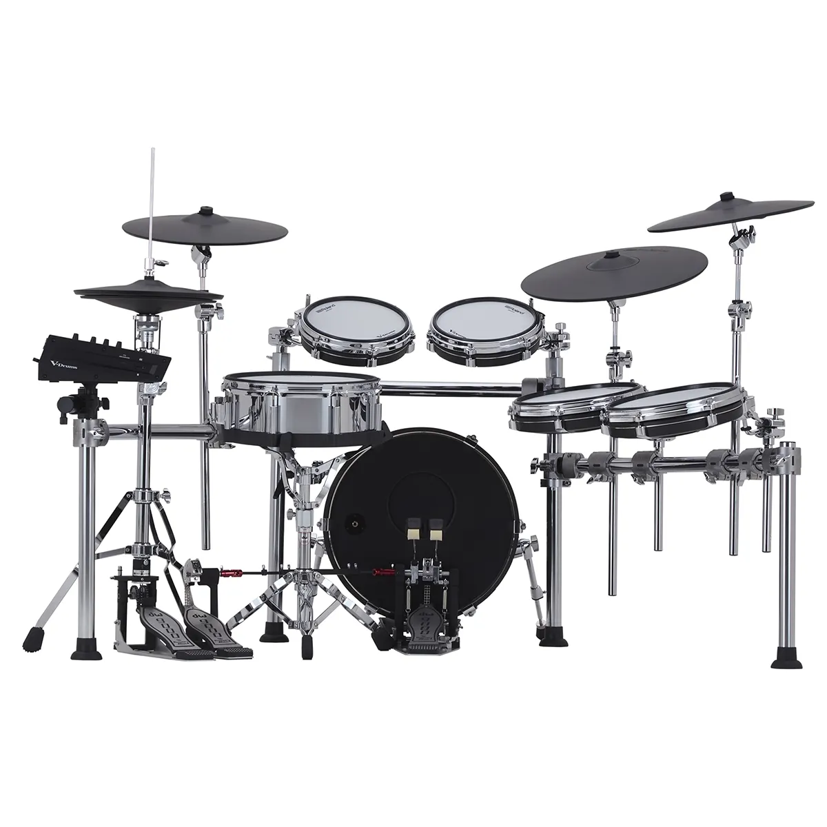 La gamme V-Drums 7 ouvre un nouveau chapitre dans la passionnante histoire V-Drums en améliorant les batteries électroniques leaders du marché par un module de sons repensé, des pads de nouvelle génération et des outils créatifs améliorés. Notre meilleure batterie à ce jour vous procure deux moyens de jouer : depuis la sonothèque du module, créée en collaboration avec DW, ou via le logiciel DW Soundworks sur ordinateur. Et grâce à sa liaison sans fil intégrée et Roland Cloud Connect sur votre smartphone, vous pouvez aller chercher de nouveaux sons dans un ensemble en constante expansion d'Extensions d'instrument V-Drums, de Packs de kits et autres.