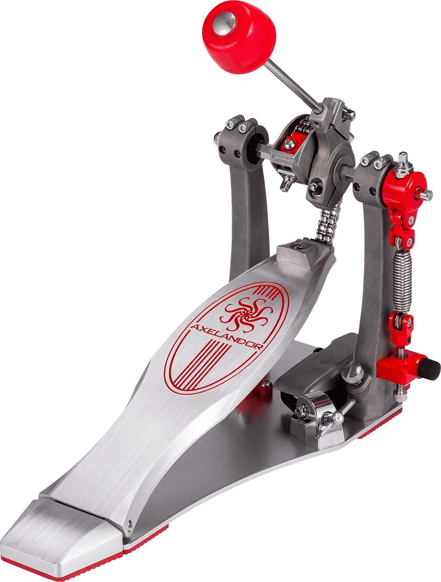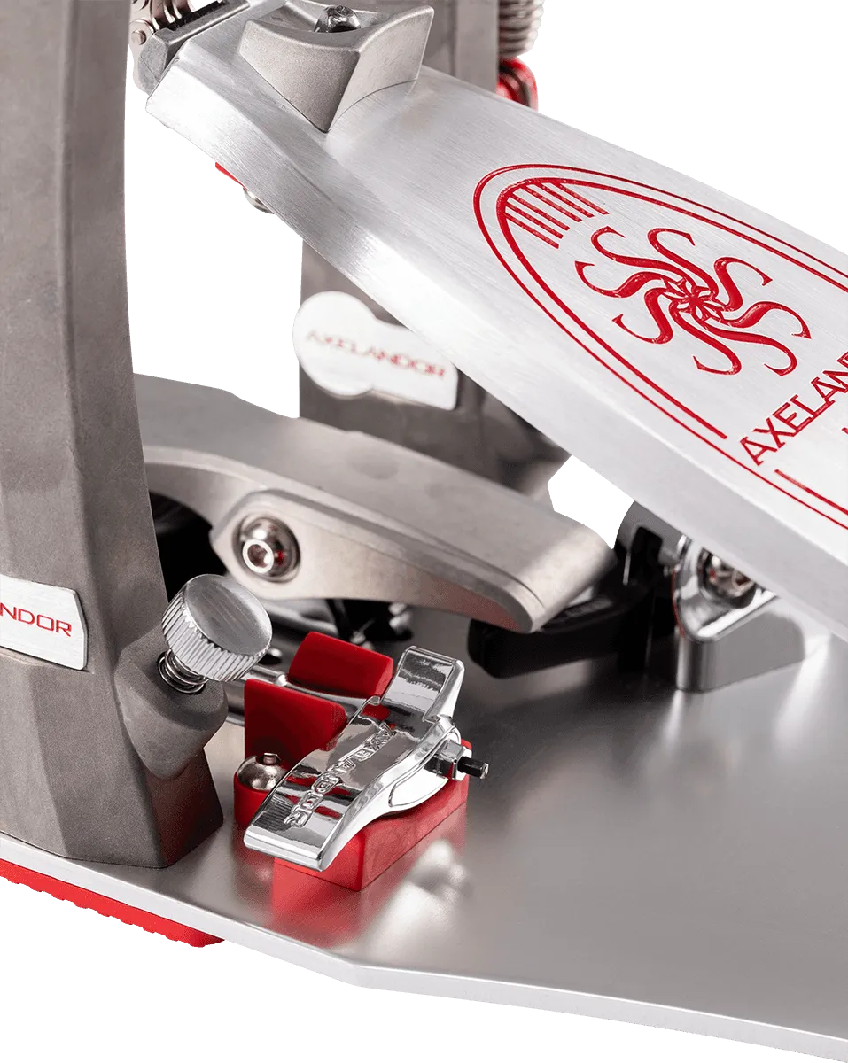 La série de pédales pour grosse caisse Axelandor est conçue en aluminium, lui procurant légèreté et fiabilité. Son système multi-axes permet de choisir entre 3 positions afin de trouver la puissance et le contrôle adaptés pour le jeu du batteur. La pédale Axelandor est disponible en version simple et version double.