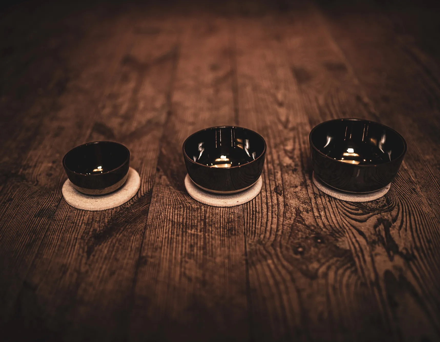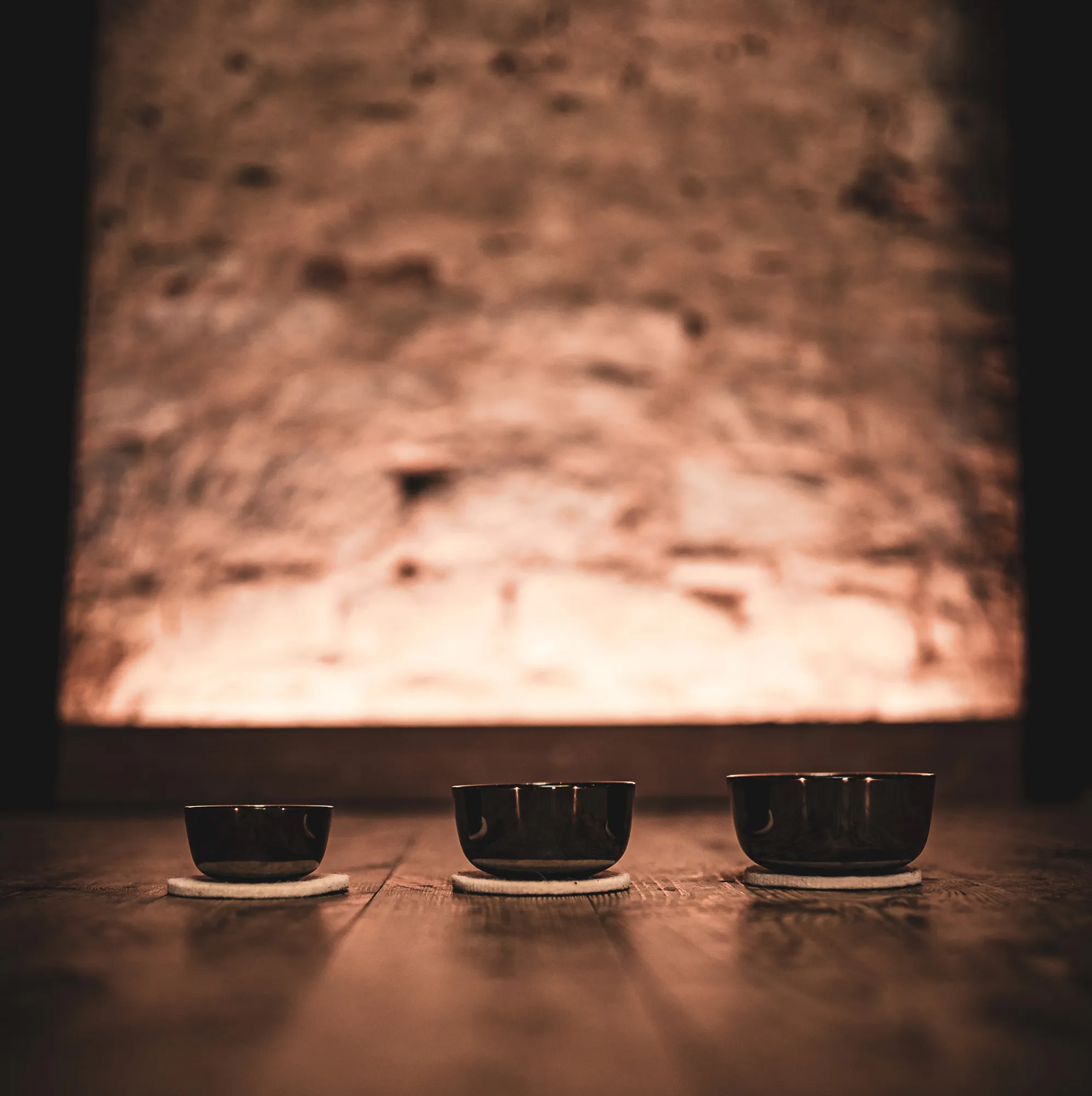 Cet ensemble contient trois petits bols chantants zen avec de petits sous-verres en feutre chacun.