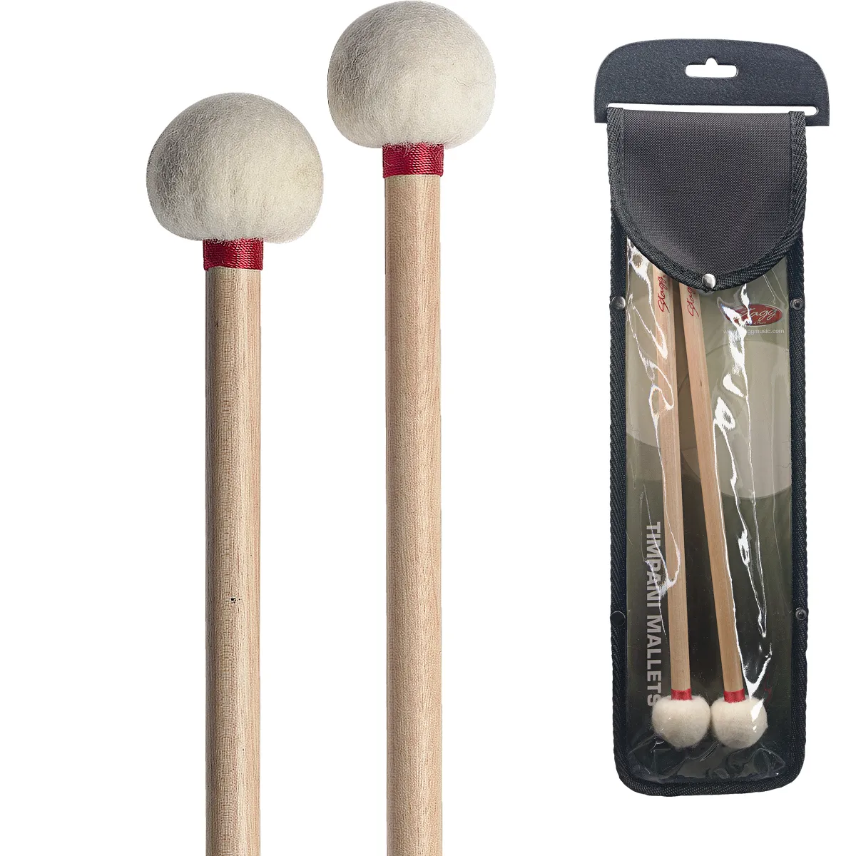 Mailloches timballes, manche érable, tête en feutre (diam.35 mm)