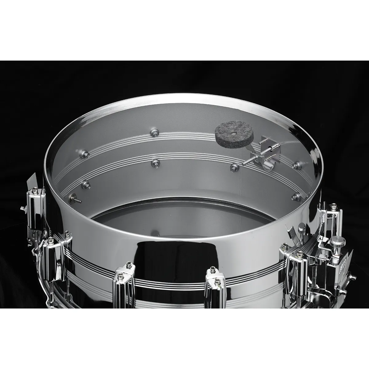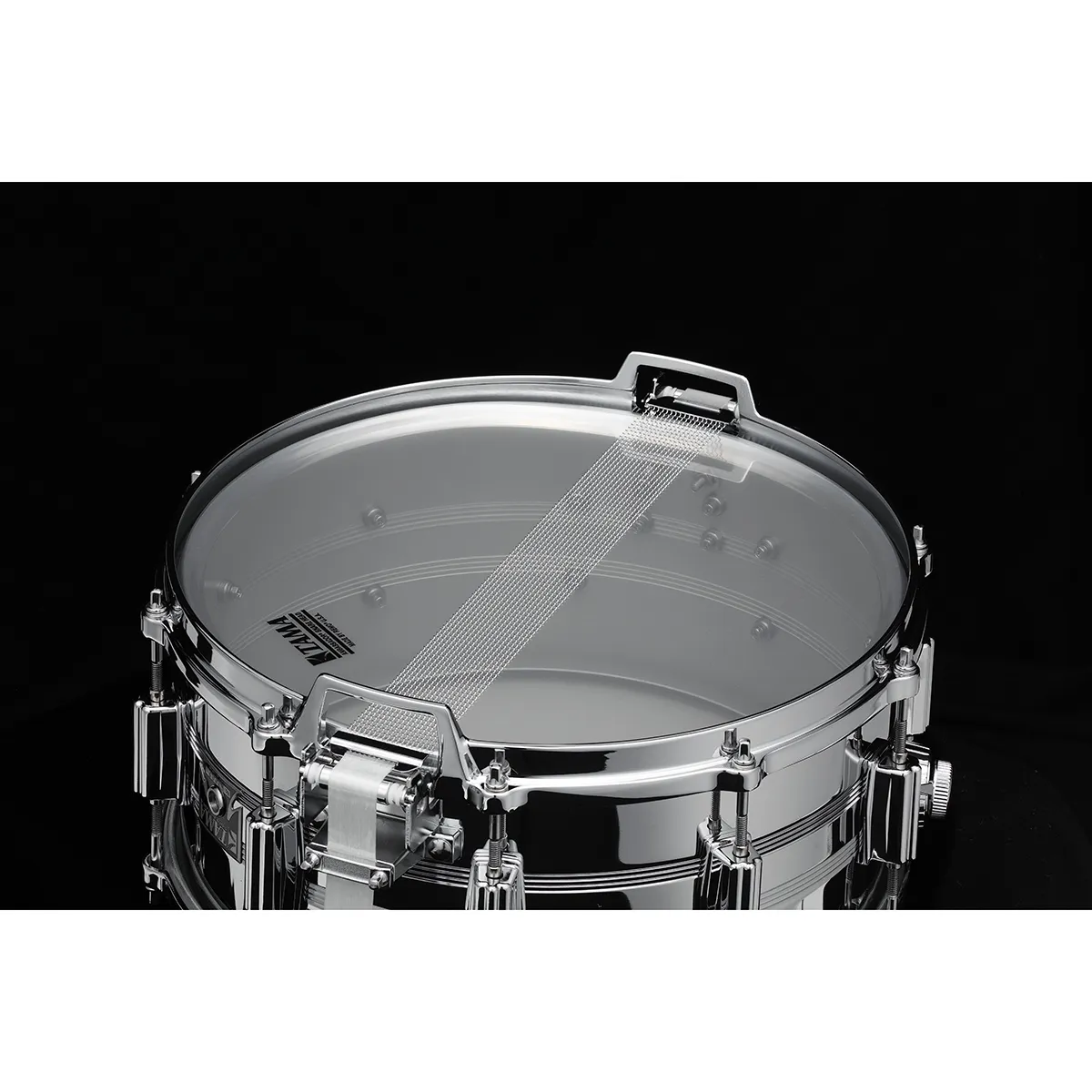 Populaire parmi les amateurs de kit vintage, la caisse claire Mastercraft Steel présente une finition chromée classique et une rainure centrale qui lui confère un aspect distinct et discret. Ce modèle de réédition pour le 50e anniversaire est doté d'un fût en acier de 1,2 mm et de cercles moulés produisant une attaque nette et brillante ainsi qu'une résonance claire et nette. Complétée par un timbre au contact de toute la surface de la peau pour une meilleure articulation, la caisse claire TAMA 50th Limited Mastercraft Steel Reissue restitue parfaitement le son des années 80.