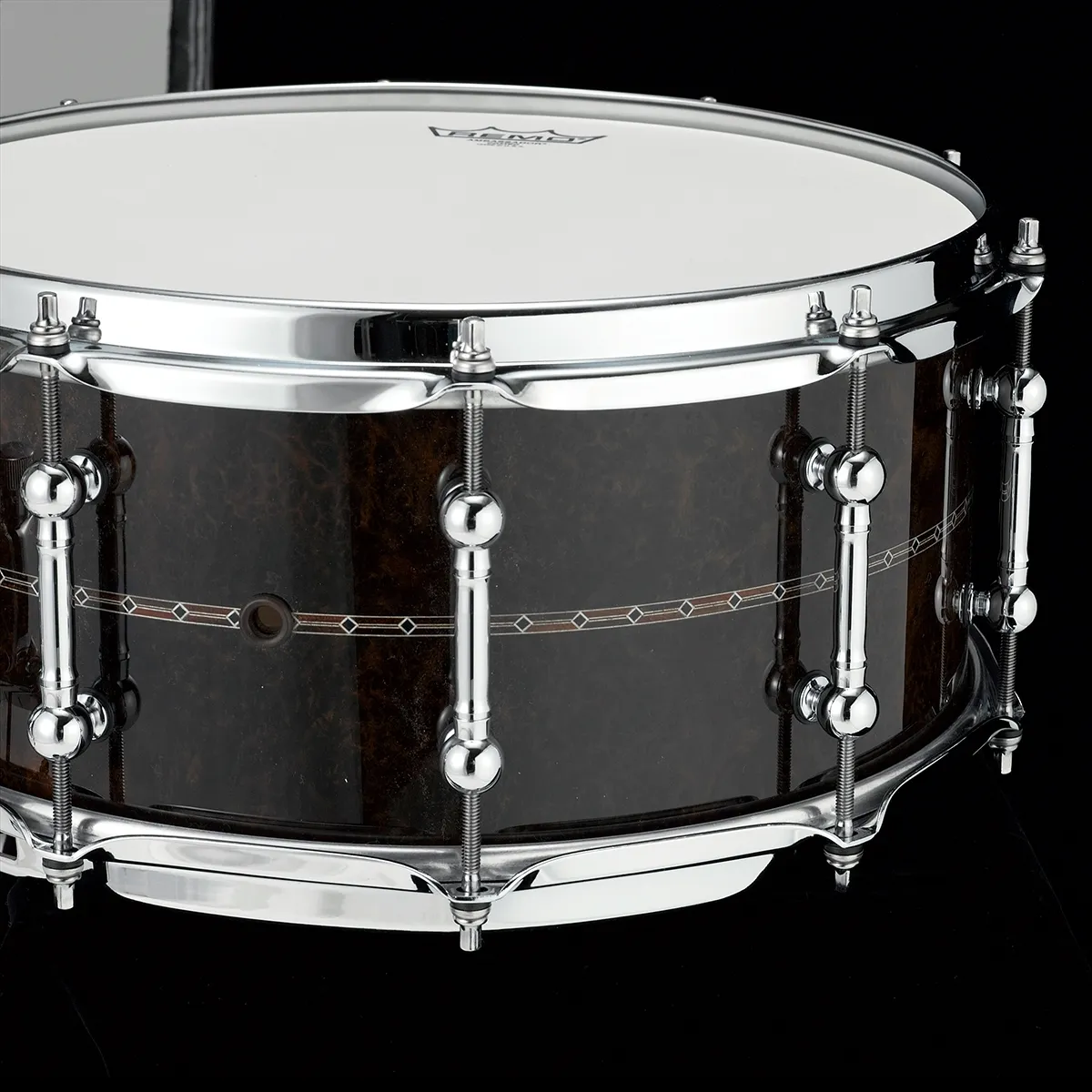 Ce troisième modèle de la série de caisses claires STAR Reserve a été conçu pour obtenir une coupe et une projection extrêmement nettes. Le fût hybride en bubinga et noyer avec des renforts chanfrein Sound Focus en érable crée une sonorité solide, tendue et résonnante. Le magnifique pli extérieur en noyer Claro laqué en noir laqué ajoute à l'élégance à l'instrument. Elle est également équipée du Sound Arc Hoop et des nouvelles Coquilles STAR Tube offrant un accordage précis.