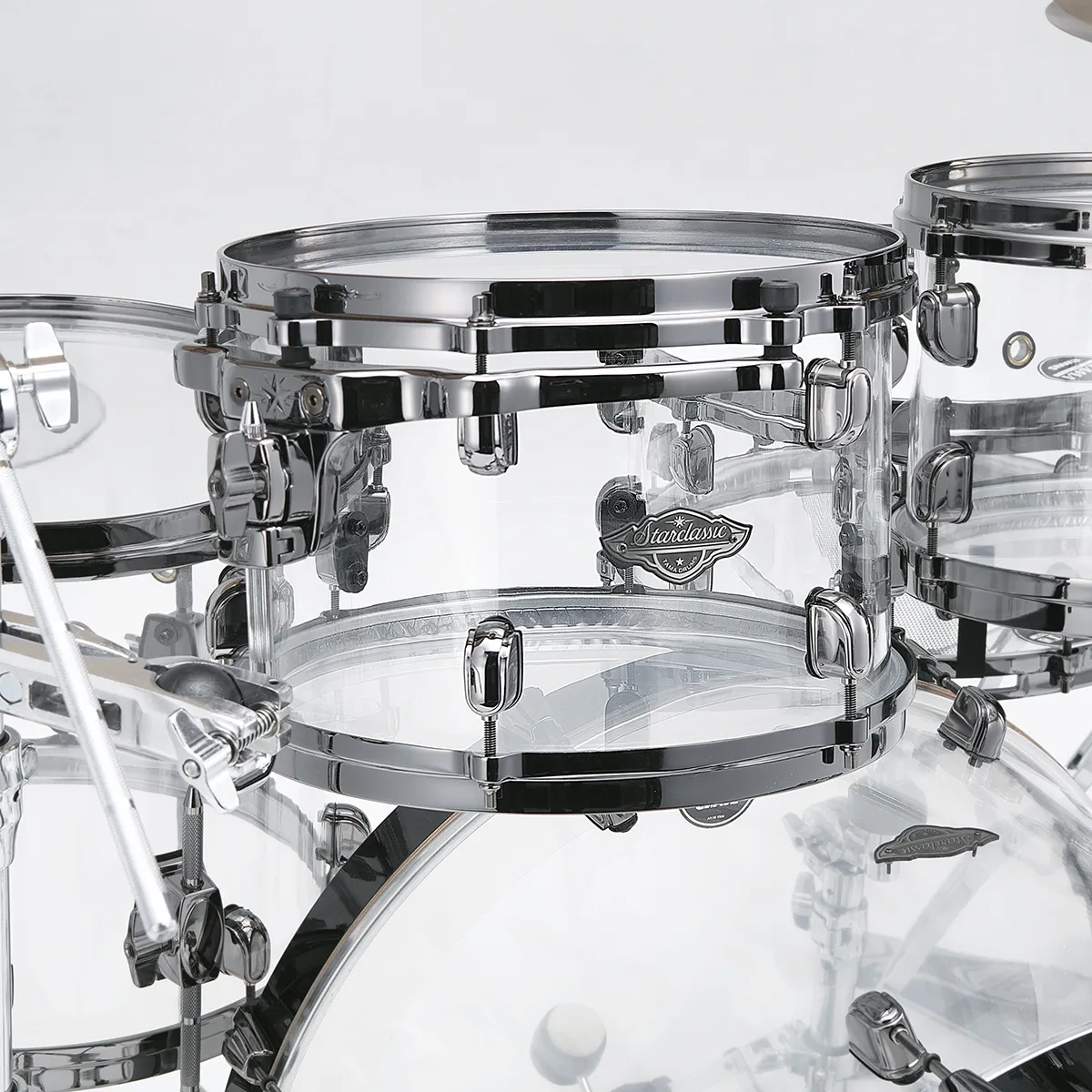 Caractérisée par une attaque puissante et un son foudroyant, la Starclassic Mirage est dotée de fûts en acrylique sans soudure qui lui confèrent un son inégalé et un look époustouflant. En plus de son contrôle, de son dynamisme et de sa richesse sonore, l'acrylique n'est pas affecté par les changements de température, ce qui le rend parfait pour une utilisation dans n'importe quel contexte. L'accastillage en Black Nickel plus foncé complète parfaitement les fûts transparents, garantissant que le public et les batteurs seront instantanément captivés par leur présence sur scène.