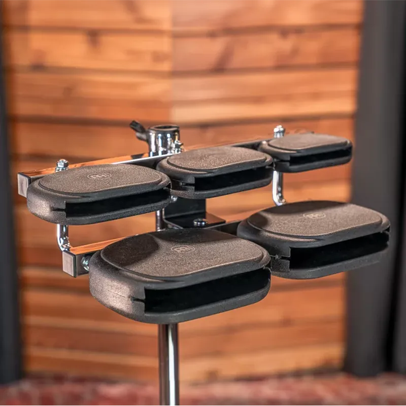 Ce jeu de 5 blocs synthétiques durables a une hauteur tonale variable, de l'aigu (le plus petit bloc) au grave (le plus grand bloc). Fabriqué en matériau synthétique durable pour une meilleure projection et une meilleure résistance aux chocs, chaque bloc est doté d'un corps creux qui produit un son de bloc de percussion riche qui remplit facilement n'importe quel espace avec du son. Le Set Meinl Temple Block s'adapte à une variété de situations musicales, de l’ensemble de percussion à la batterie, et est équipé d'un cadre métallique robuste qui se fixe à n'importe quel pied/stand de batterie standard grâce à son système à vis.