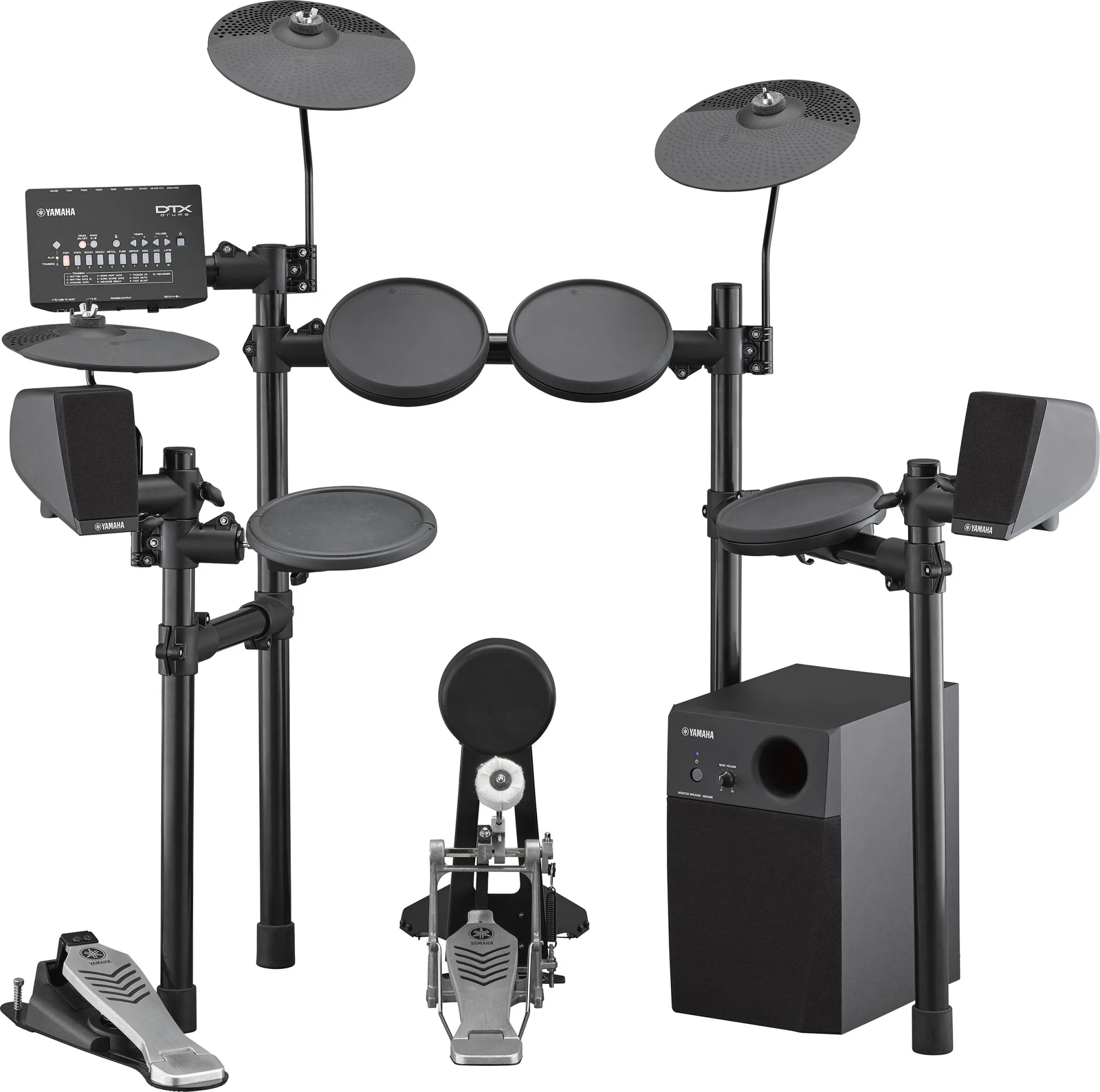 L'ensemble caisson basses et satellites permet de reproduire l'ensemble des fréquences allant des basses profondes de la grosse caisse aux aigus des cymbales. Le placement stéréo des haut-parleurs donne un rendu comparable à celui d'une batterie acoustique. Le MS45DR vous permet de profiter d'une qualité sonore incroyable sans être isolé (contrairement au casque) vous permettant ainsi de partager vos prestations avec votre entourage comme votre famille ou vos amis
