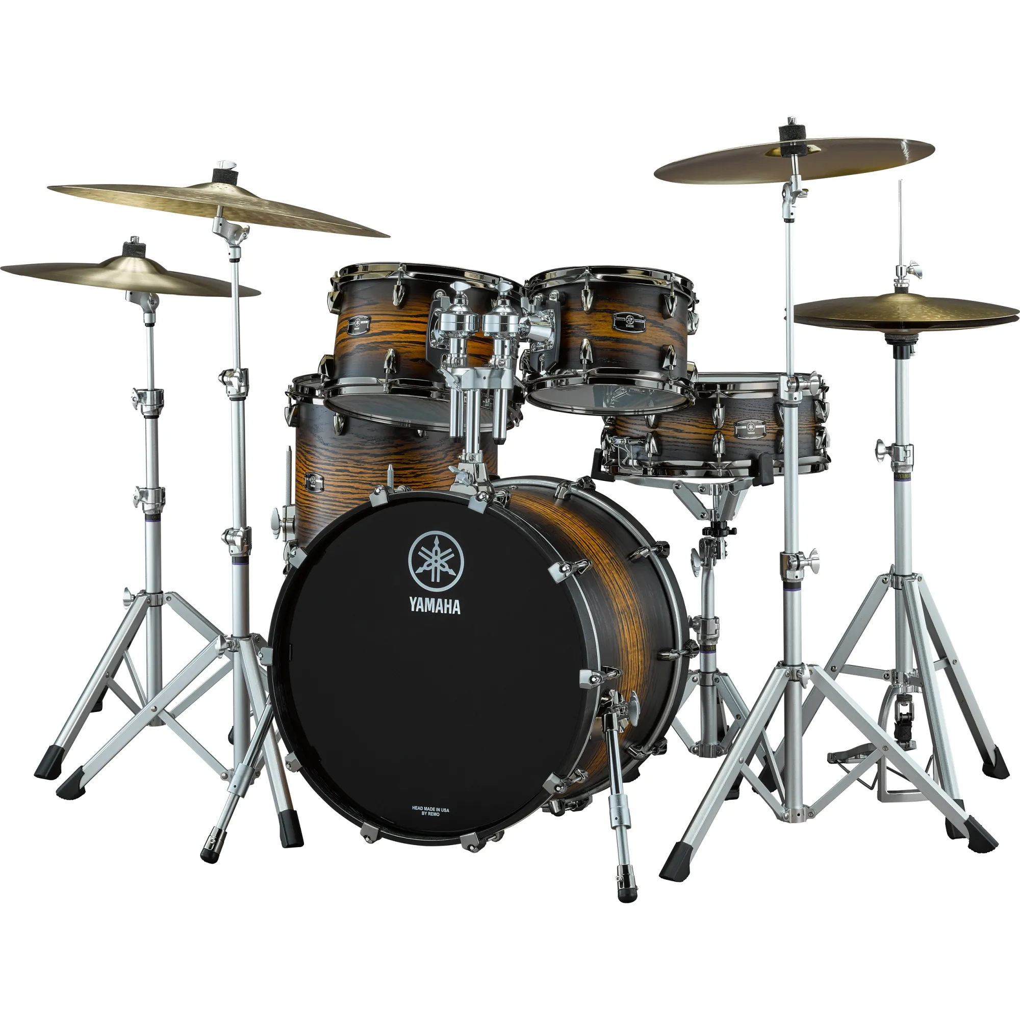 La conception hybride dévellopée par Yamaha offre à ce nouveau kit une densi- té sonore incroyable, de la puissance et précision sur l’ensemble du spectre grâce à la combinaison de plis en Chêne et d’un pli central en Résine Phenolic. La conception hybride des fûts a déjà fait ses preuves sur les modèles les plus prestigieux comme la PHX ou l’Absolute Hybrid Maple.