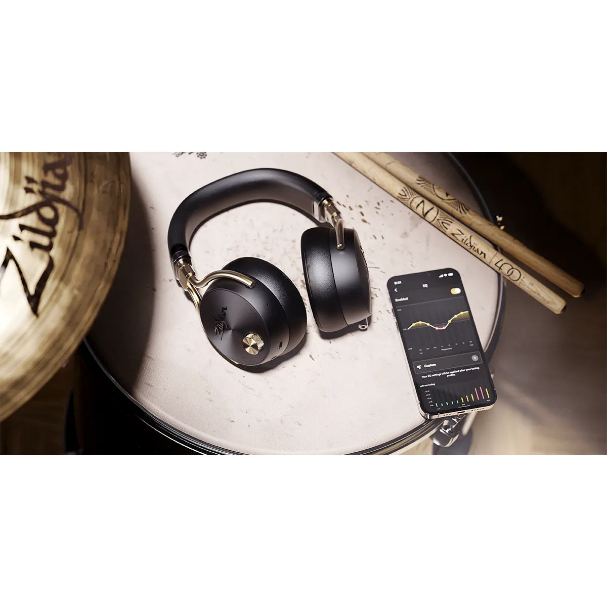 Le casque Zildjian ALCHEM-E Perfect Tune™ se couple à l'appli Zildjian pour créer une expérience d'écoute vraiment personnalisée - adaptée à votre audition - afin que vous ne manquiez jamais une note. De plus, ce casque offre 2 niveaux d'annulation active du bruit et un égaliseur complet pour que vous entendiez votre mixage parfait. Le casque ALCHEM-E est idéal pour une utilisation dynamique, offrant un port confortable qui reste en place lorsque vous jouez de la batterie ou que vous courez.