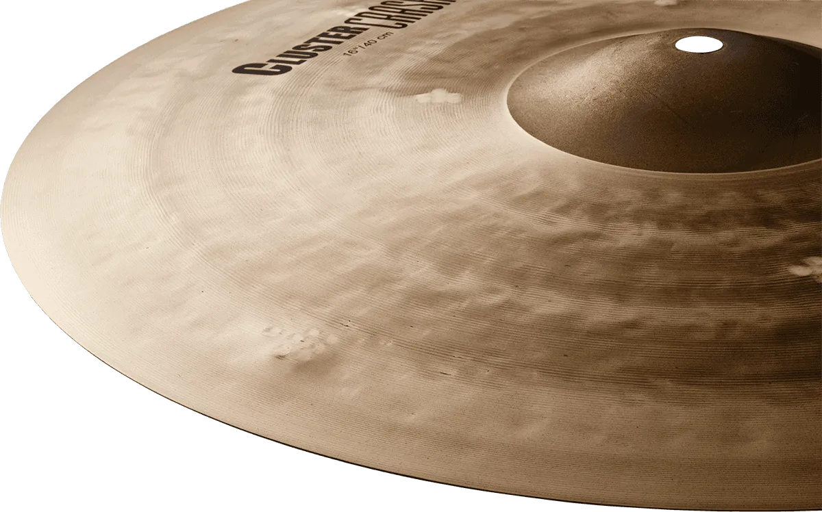 La K Cluster Crashes est extra fine avec une cloche non ciselée et dispose de la technique de martelage traditionnelle du style K avec des marques de marteaux supplémentaires qui créent un son plus sombre, plus trash avec une attaque rapide et une grande réponse.