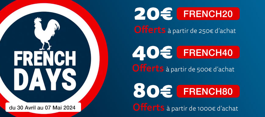 Bénéficiez de 80€ à partir de 1000€ d'achat, grâce au code : FRENCH80