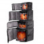 La conception ingénieuse du boîtier hybride utilise le système de montage magnétique VELOC pour se fixer au chariot et à d’autres accessoires futurs. La coque inférieure en ABS / polycarbonate est conçue pour la protection contre les chocs, et la conception multi-accès en instance de brevet (couvercles supérieurs et avant) réduit votre temps de configuration. Les sacs empilés créent un système d’étagères que vous laissez sur le chariot pour faciliter les chargements après le concert.
