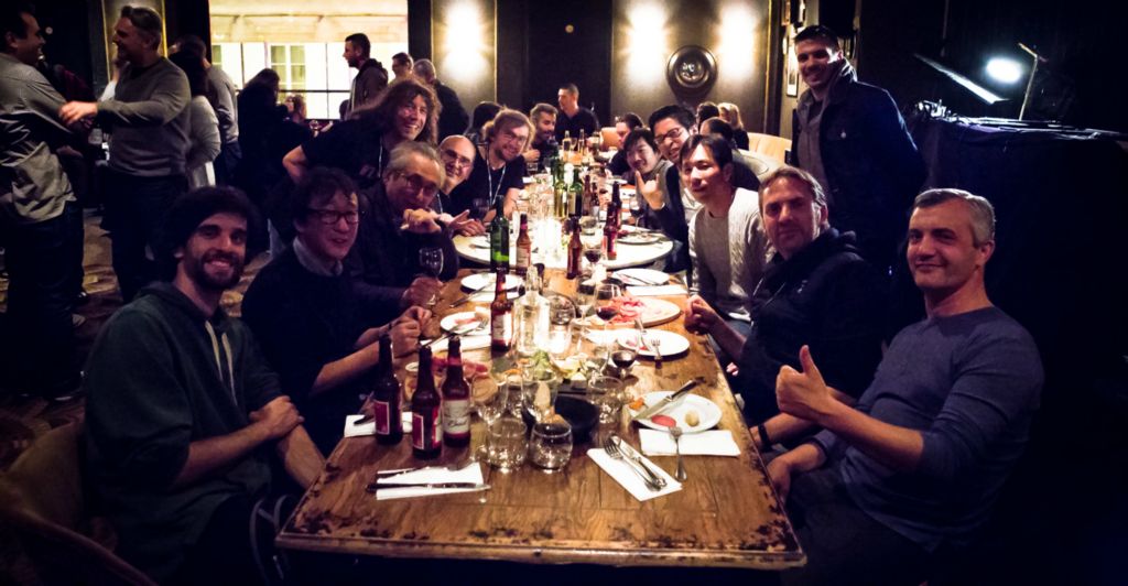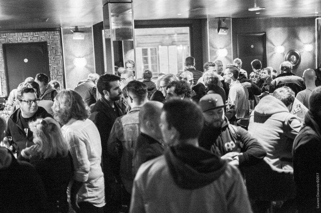 Petit pot “après montage“ au Bus Palladium le samedi soir qui a rencontré un succès imprévu ( presque 100 personnes entre fournisseurs, artistes et équipe).