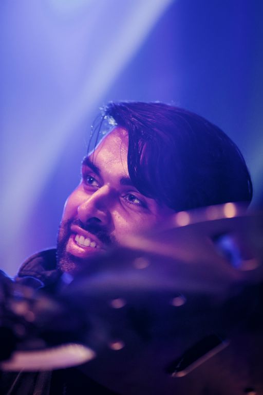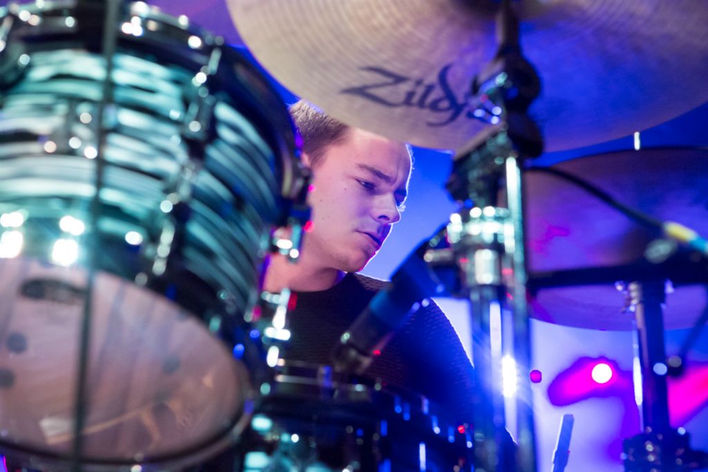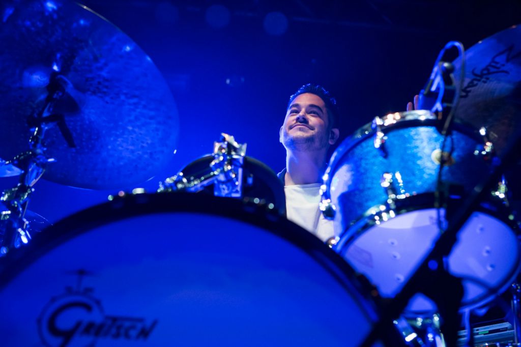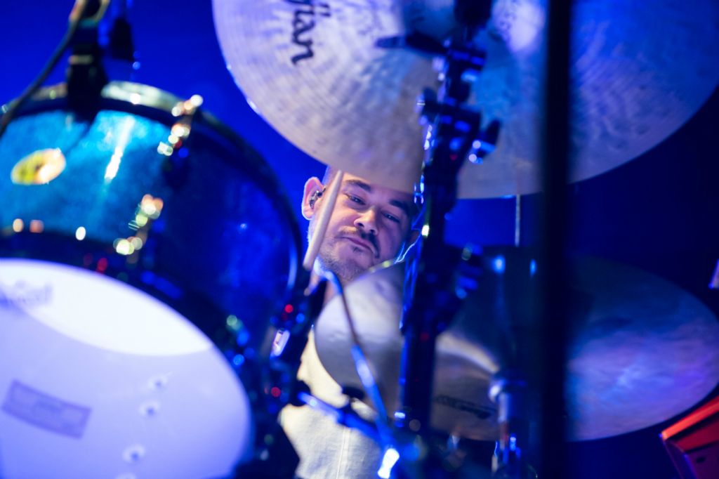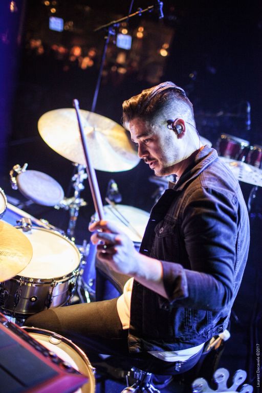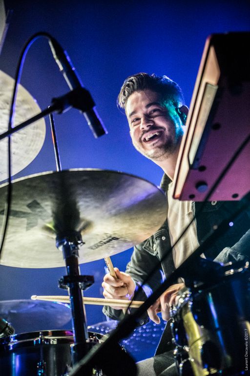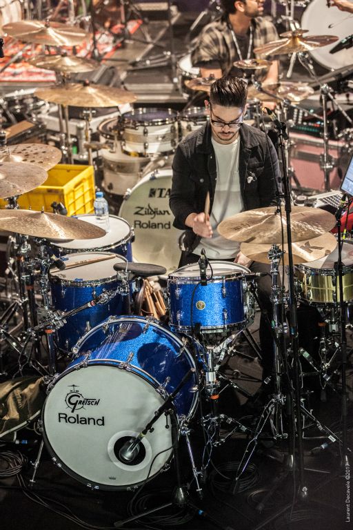 Michael Lamas est un batteur Pearl et cymbales Meinl
