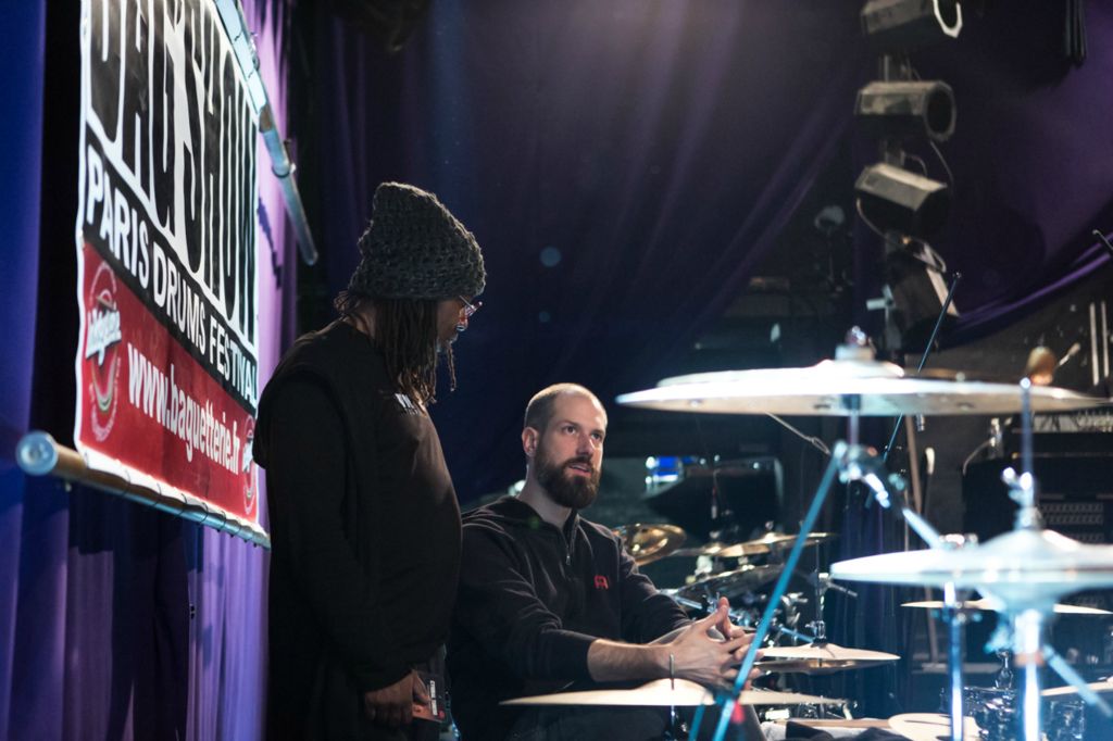 Benny Grebb avec Christophe Patak, chef de produit Meinl, Ludwig et Mapex pour la France chez Saico