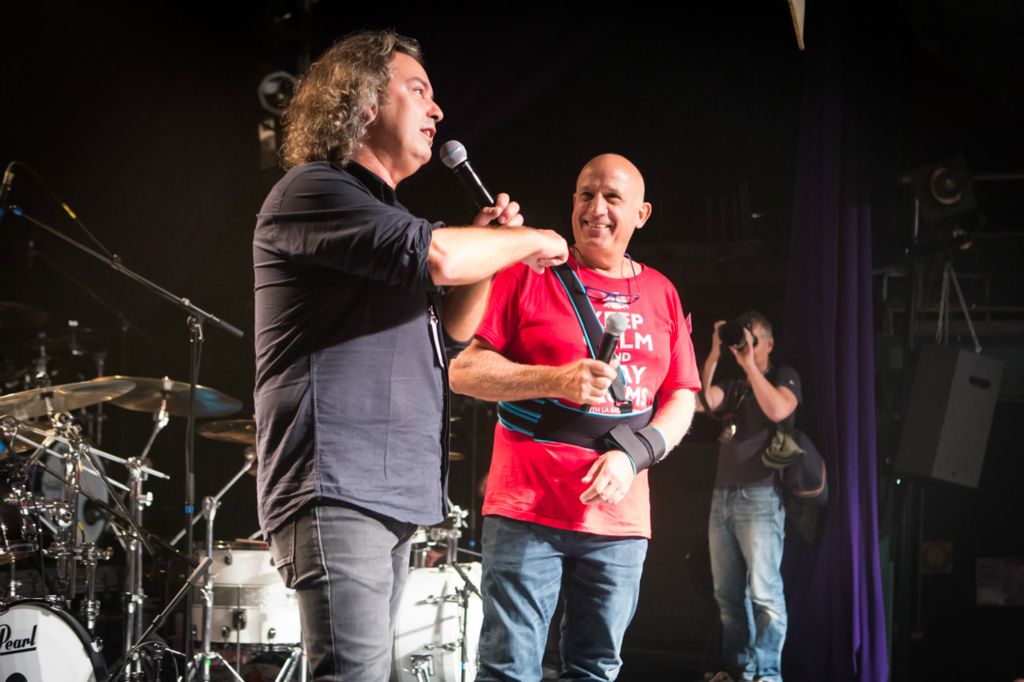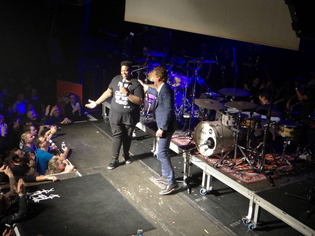 Benny Greb prends l'air avec Laurent Bataille notre Maitre de cérémonie. Cela a mis un peu d'animation pour le public