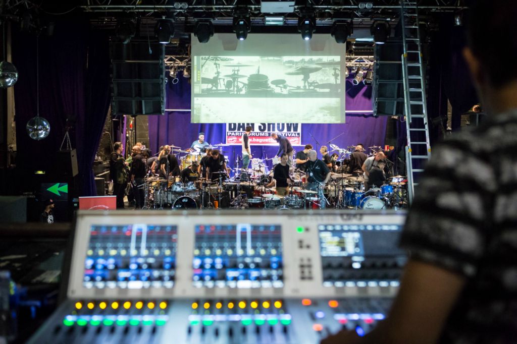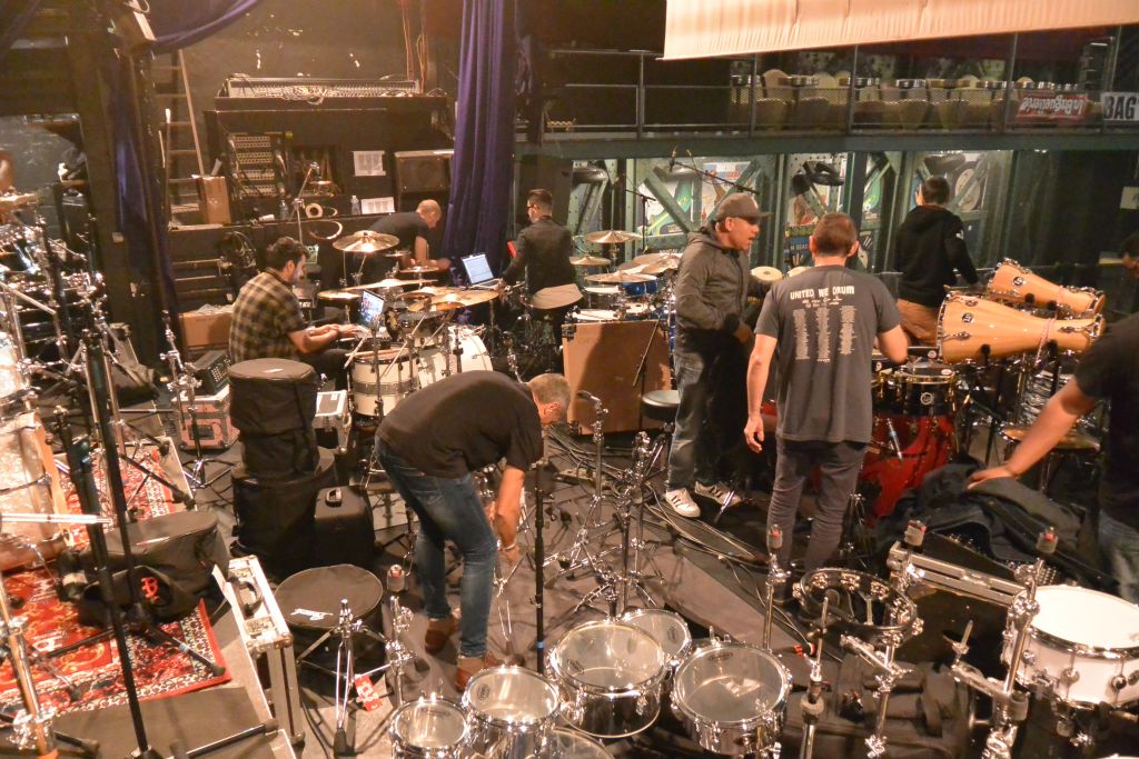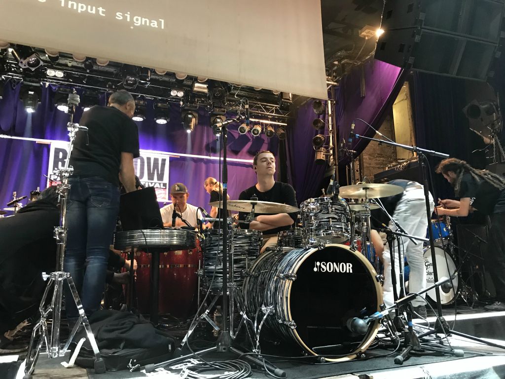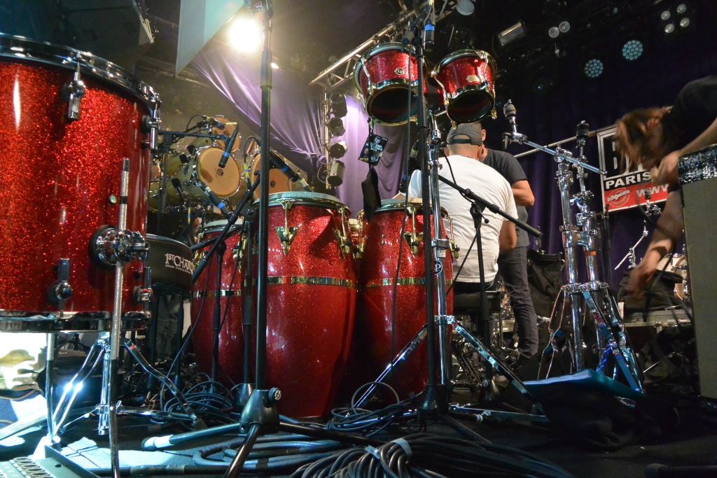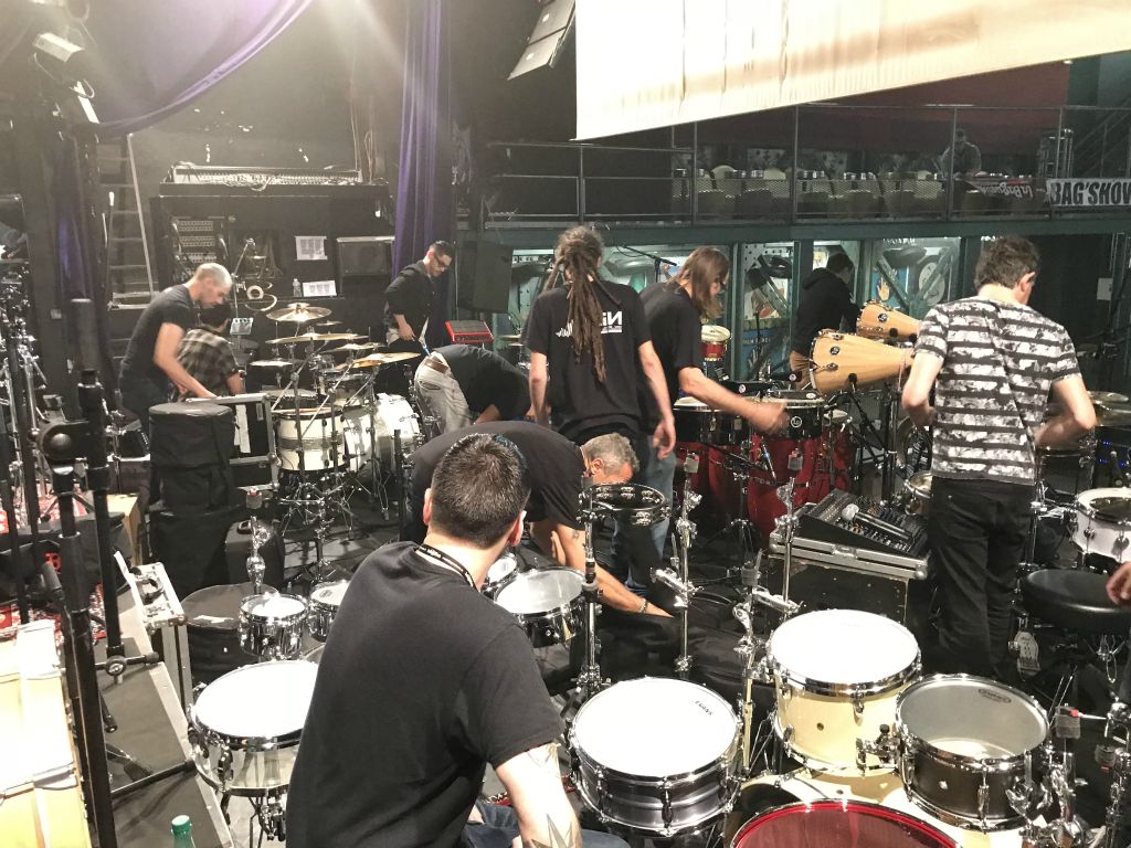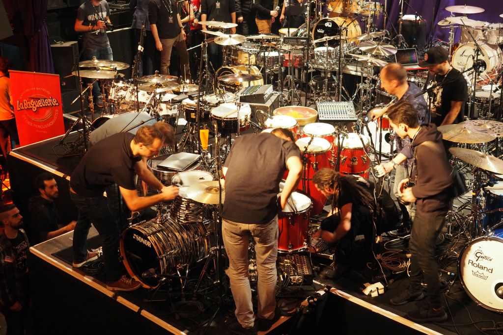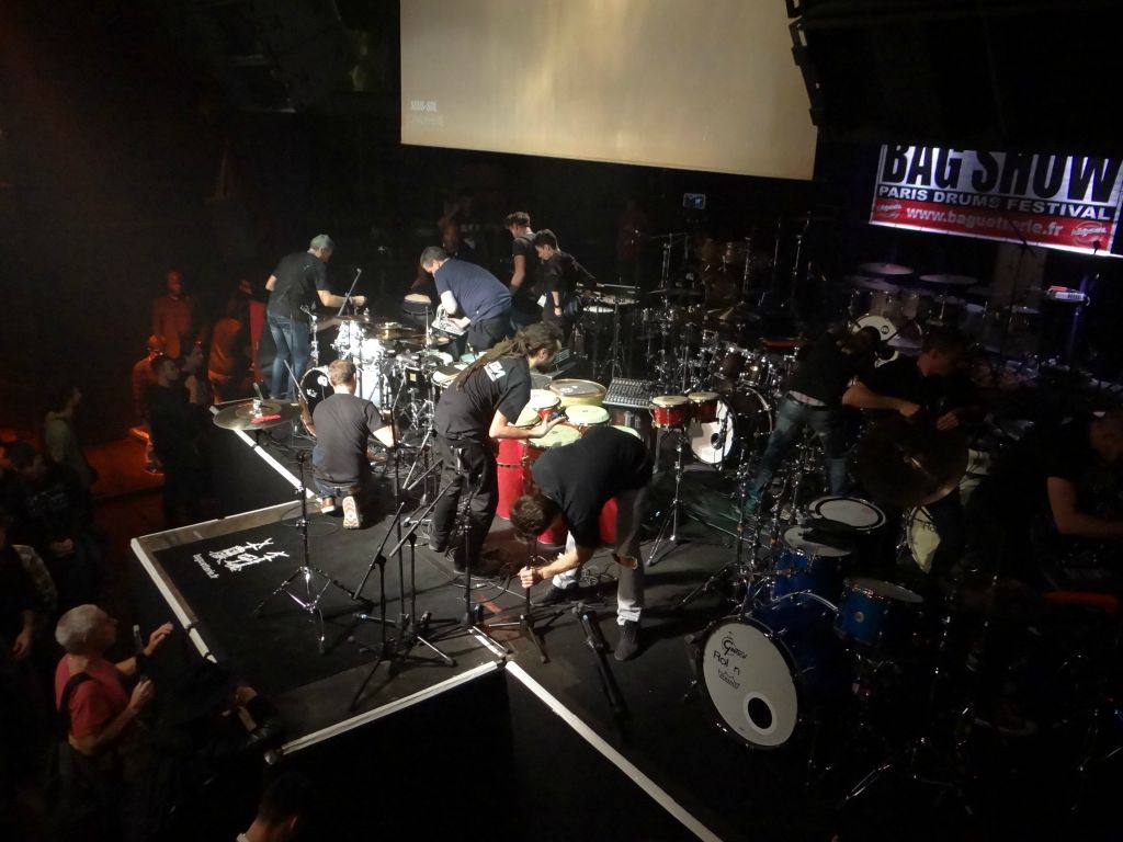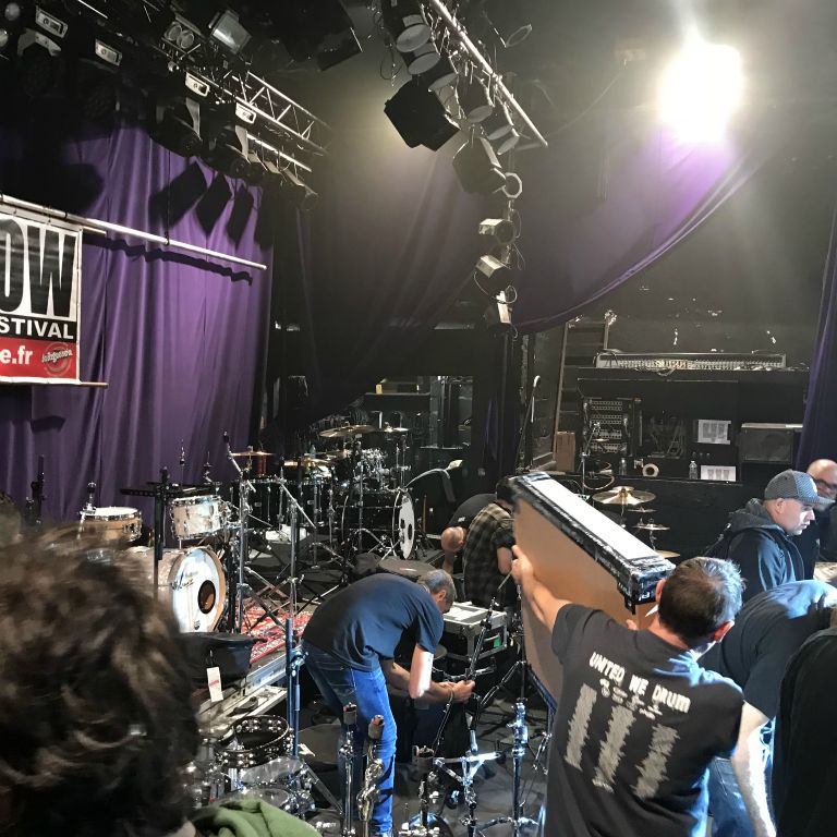 C'est l'effervécence sur scène car 10 kits doivent être installés, balance faite avant midi.