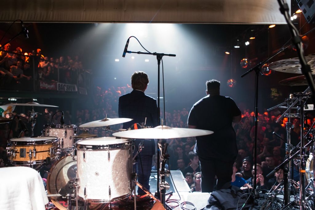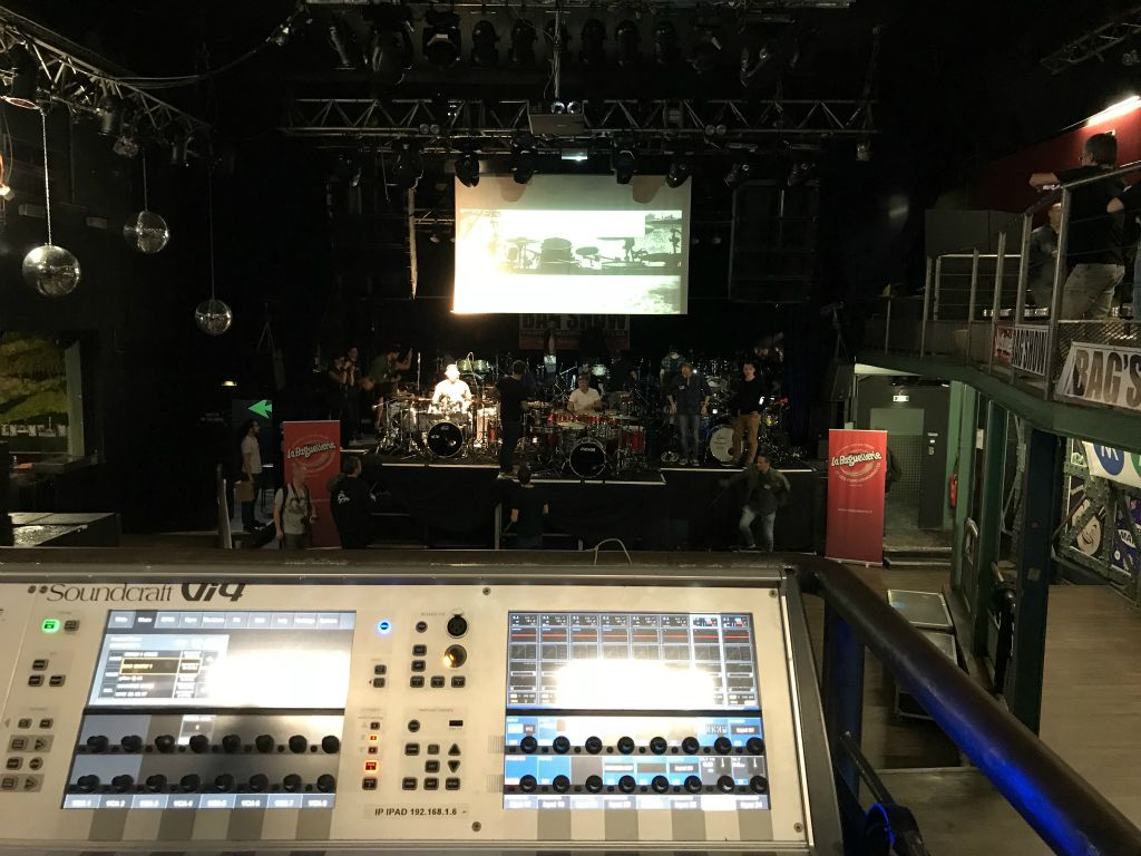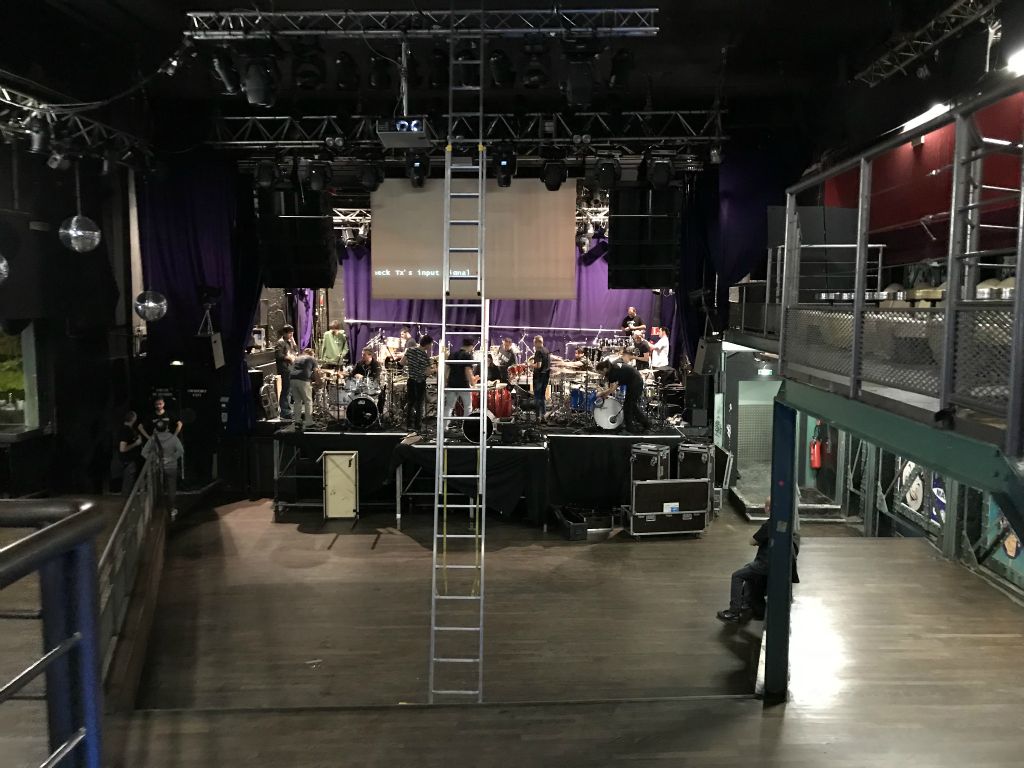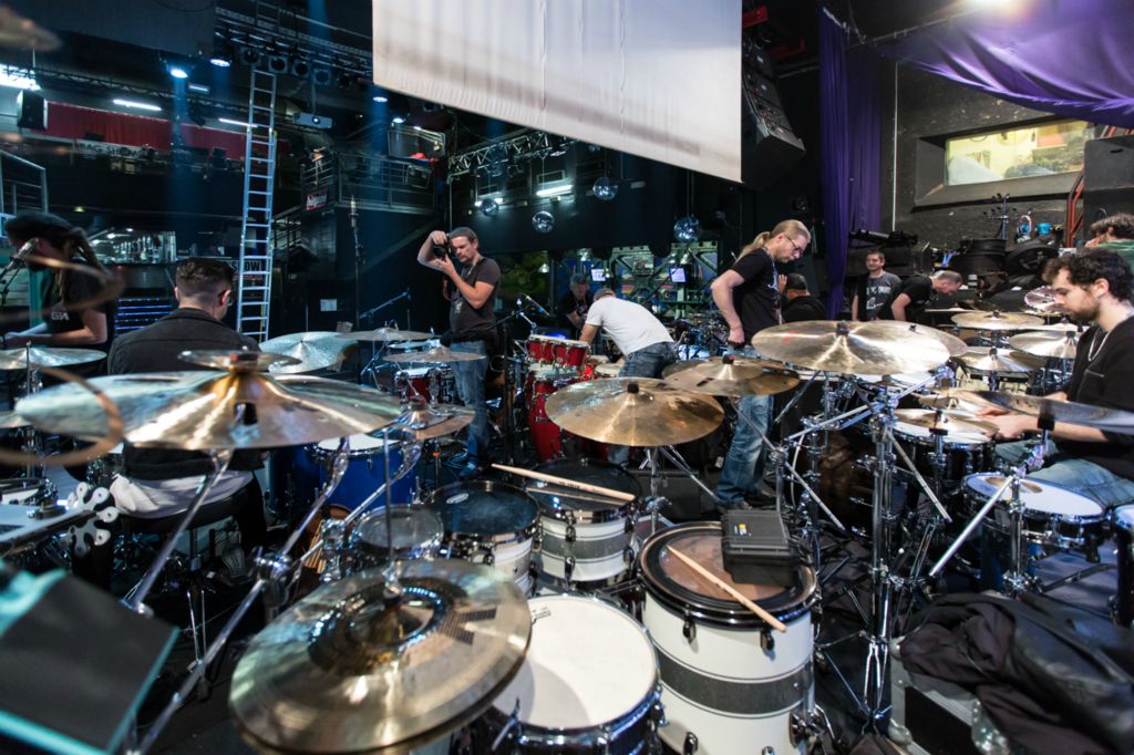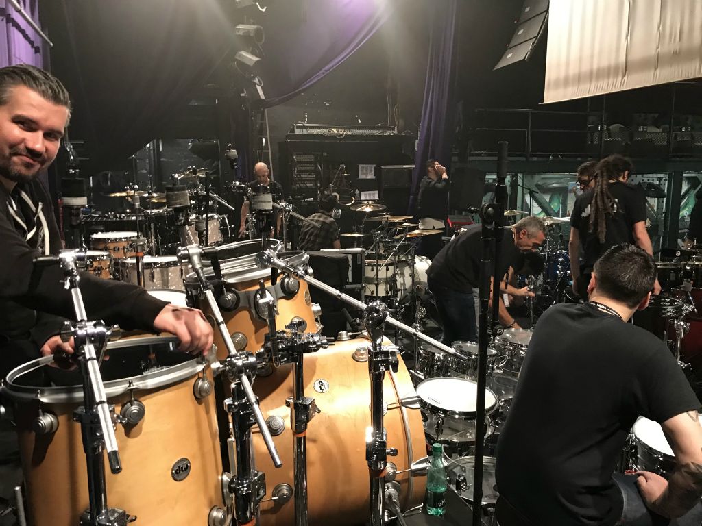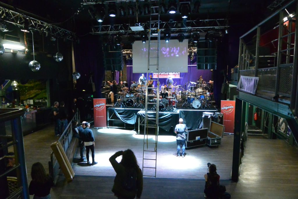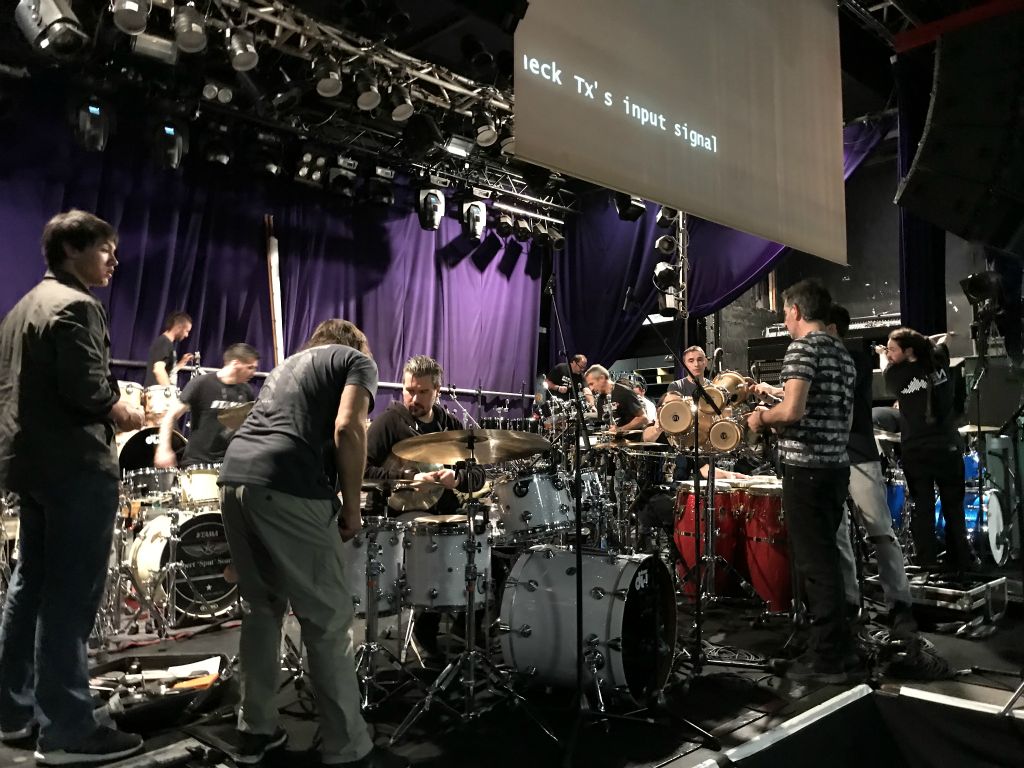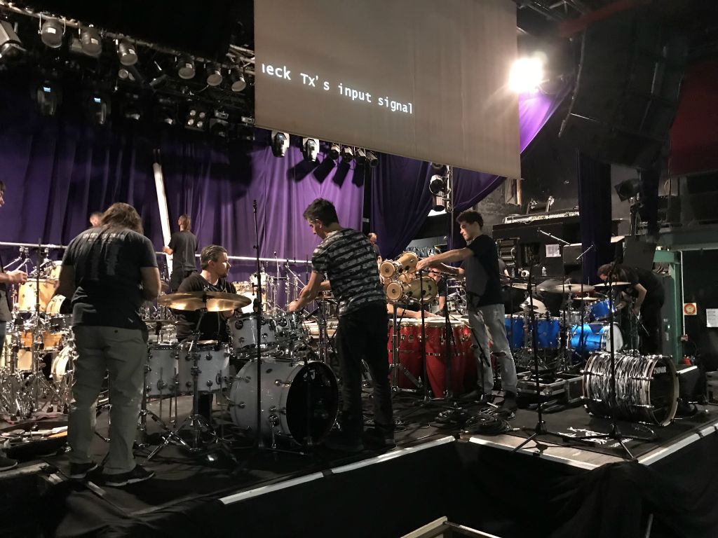 C'est l'effervécence sur scène car 10 kits doivent être installés, balance faite avant midi.