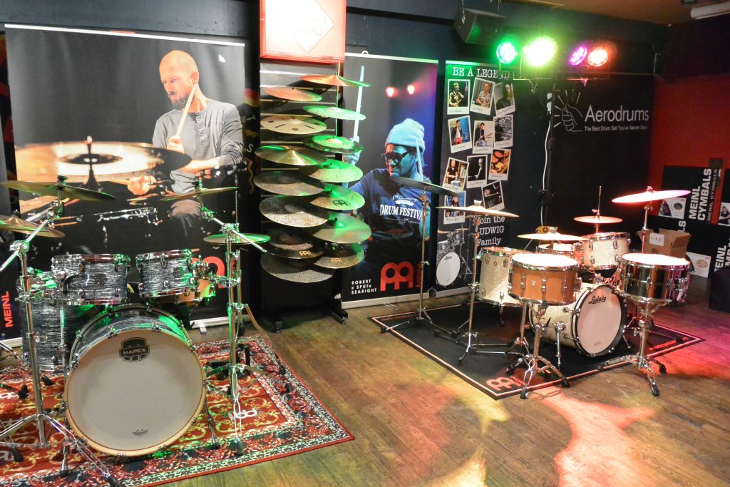 Le stand Algam, Pearl, Zildjian, Sabian, Natal, Alesis...