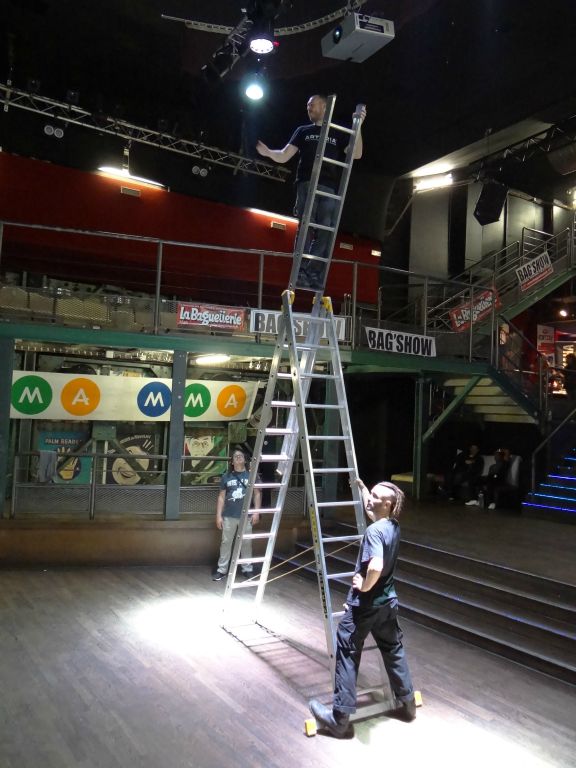 La Machine est ouverte au public pour une soirée indépendante de la Bagshow le samedi soir, ce qui nous oblige à trouver les moindres recoins pour y stocker les kits et divers matériels des exposants du RDC et ceux des artistes. Pas une mince affaire!!