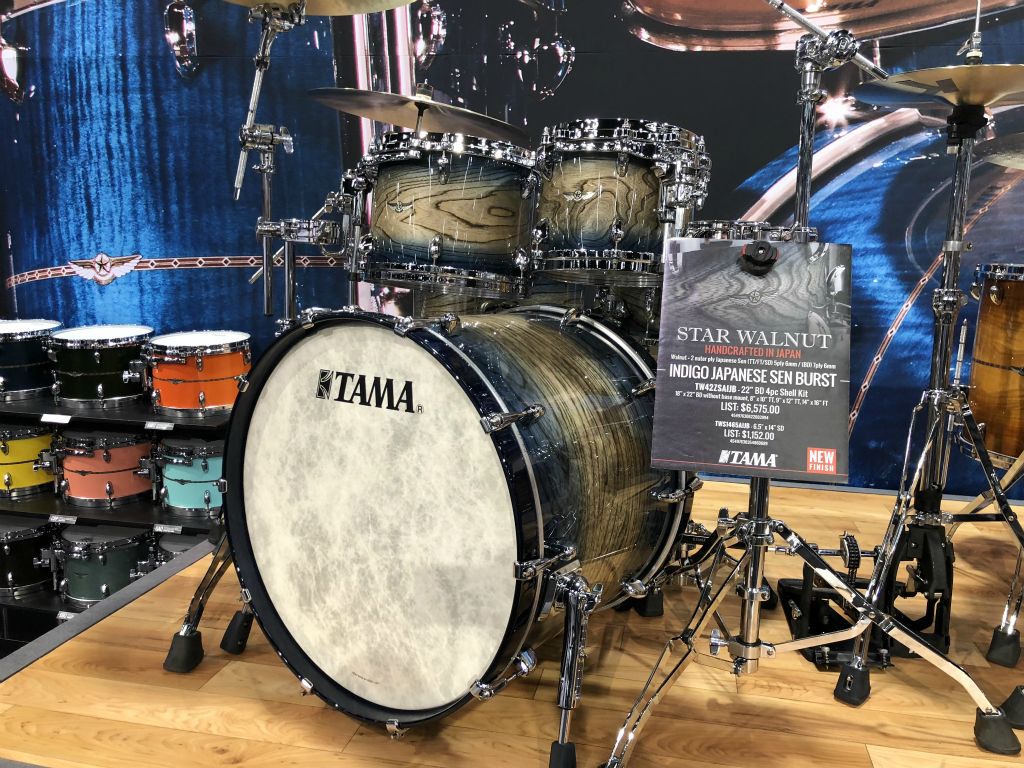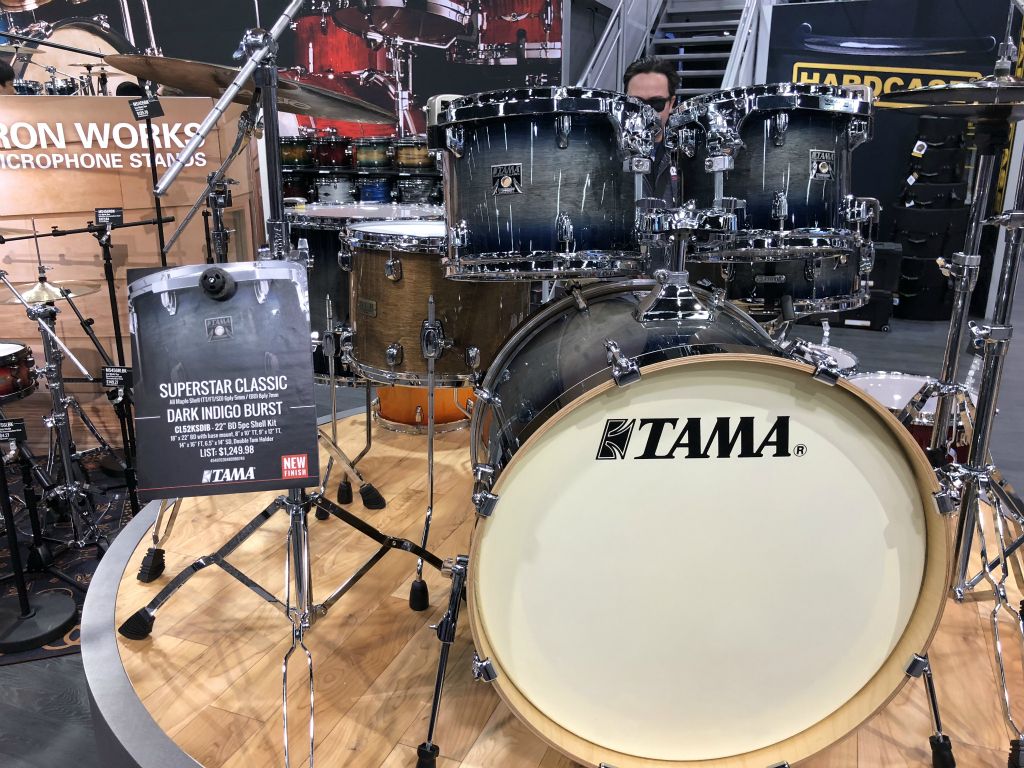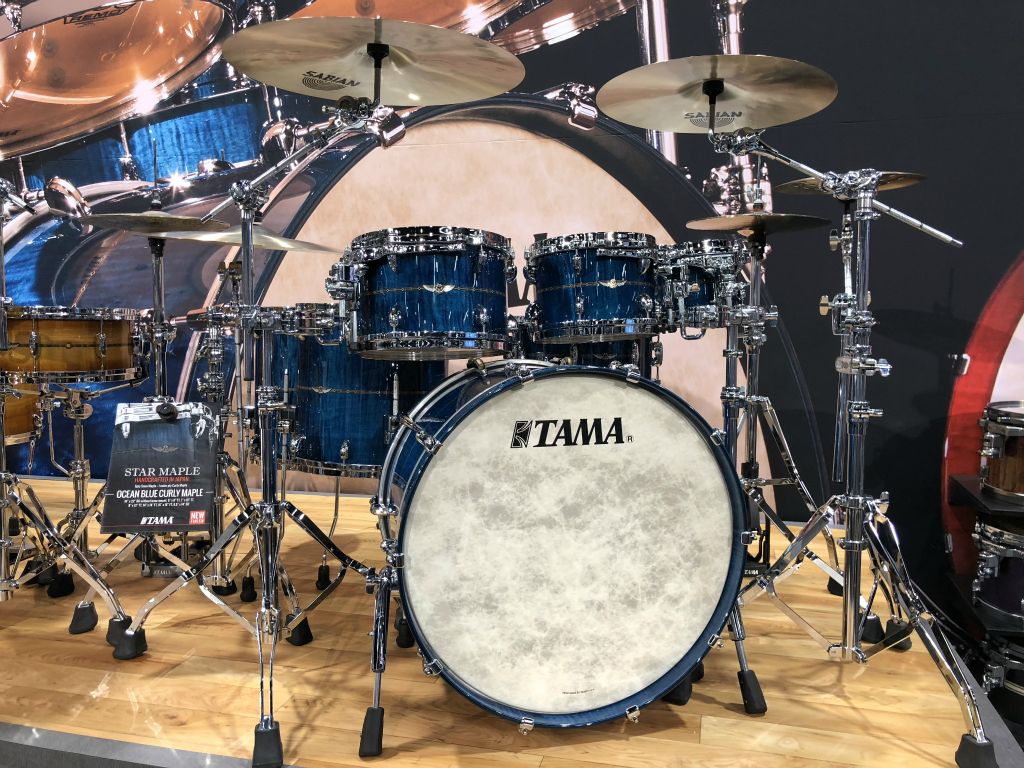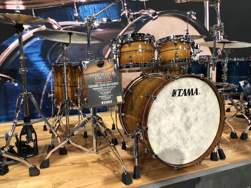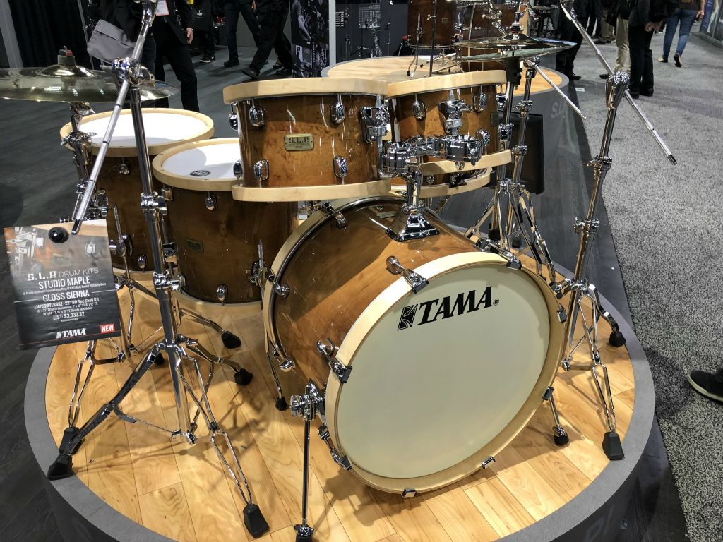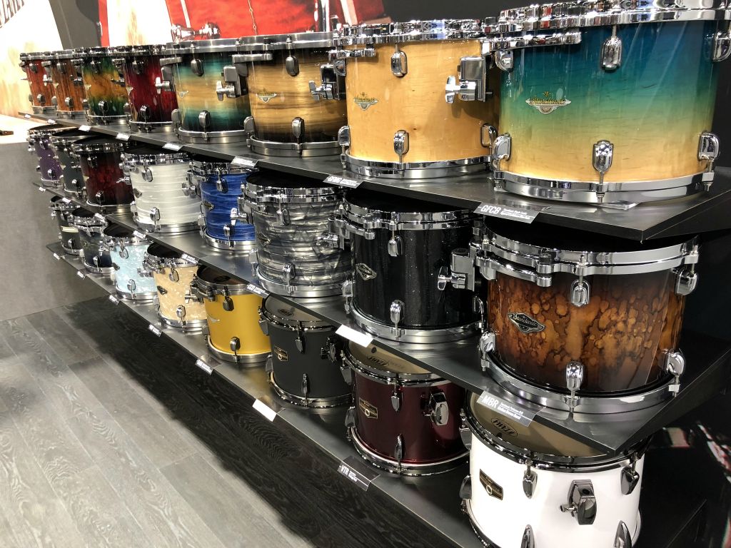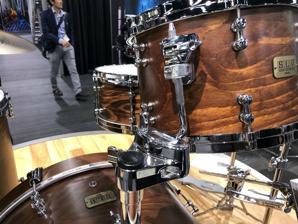 Nous avons débuté par le satnd Tama qui proposait de maginfiques Kits et quelques nouveautés Modèle TAMA SLP Dynamic Kaptur finition Gloss Black Kapur Burst