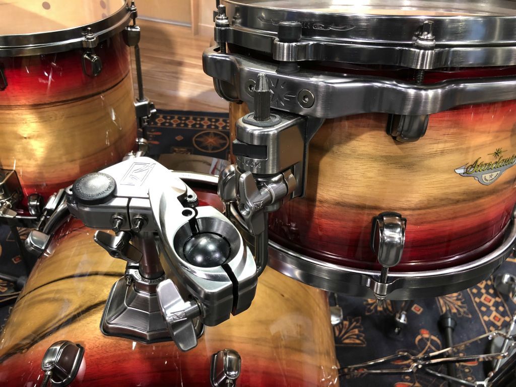 notez la coquille de tom à déblocage rapide. Toujours à la pointe du progrès chez Tama. En 40 ans de carrière je dois reconnaitre que Tama aura été le plus inventif et le plus prolifique en matière d'évolution hardware.